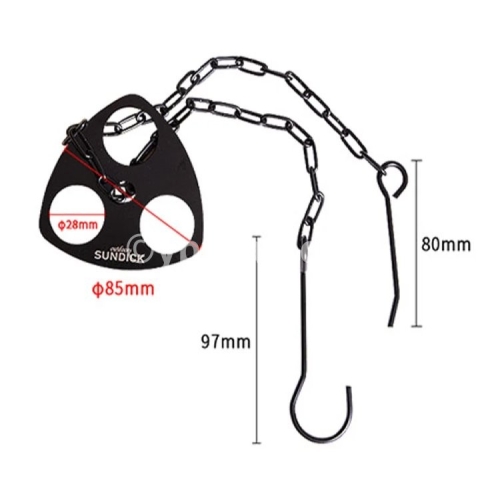 Adjustable chain to hang pan, oven and pot over campfire.