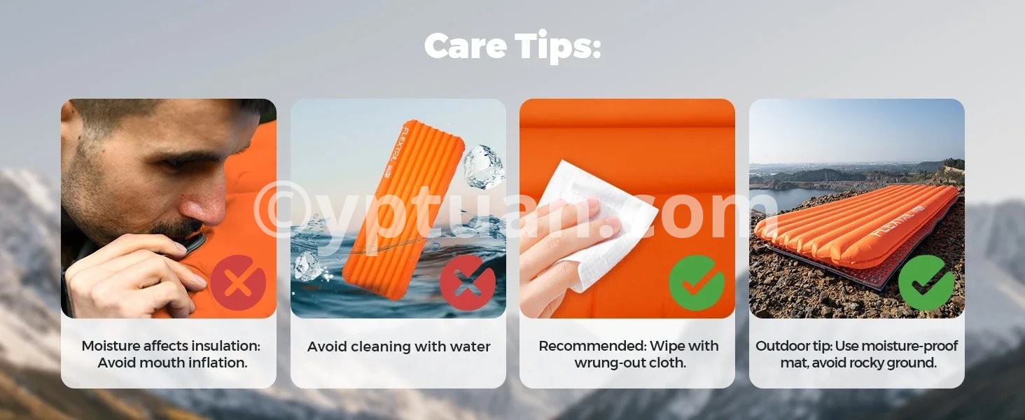 Protect your investment by following our care instructions. Avoid machine washing or submerging the sleeping pad in water to prevent damage. Instead, simply use a dry cloth to wipe away any dirt or stains. For deeper cleaning, spot clean the affected area without fully immersing the pad in water.