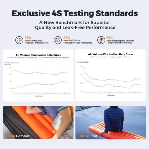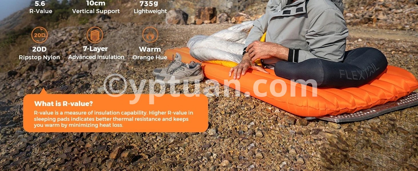REGULAR: Stay warm with our 5.6 R-Value sleeping pad, rated for -7℃ (19.4°F) and an extreme limit of -18℃ (-0.4°F), perfect for freezing conditions.