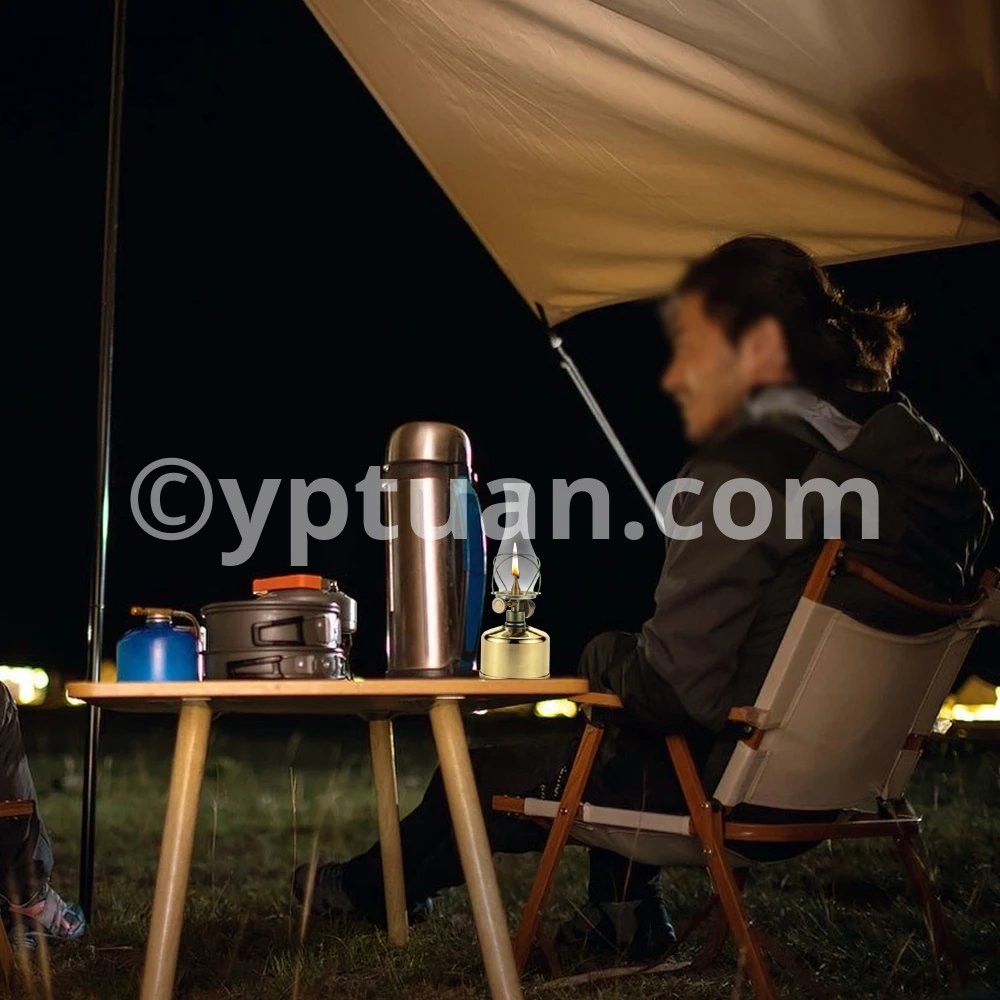 This camping gas lamp provides a gentle light that shimmers like a candle creates a good atmosphere.