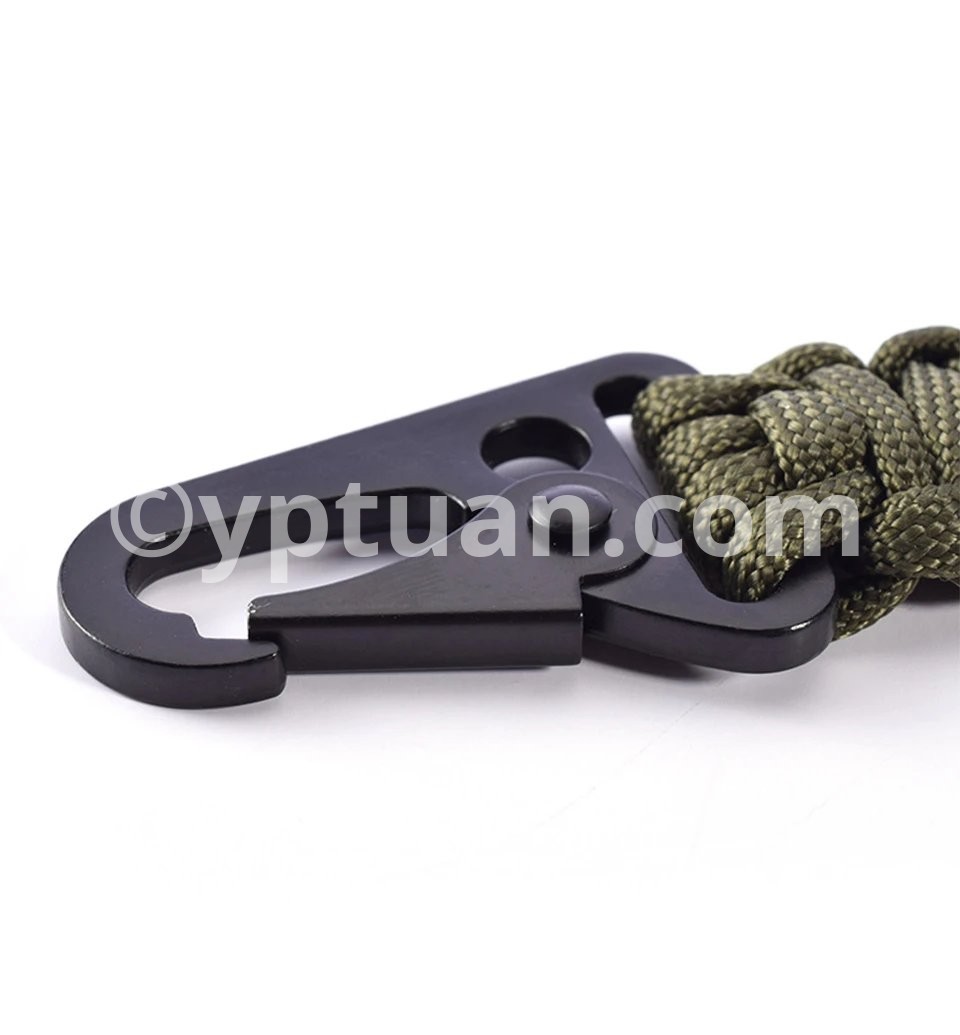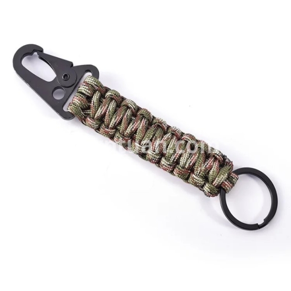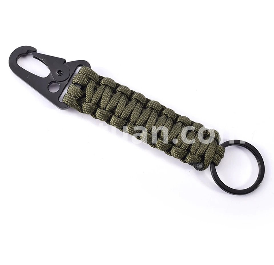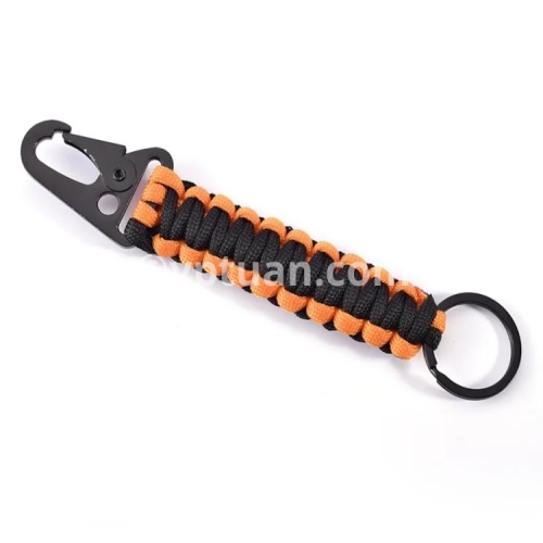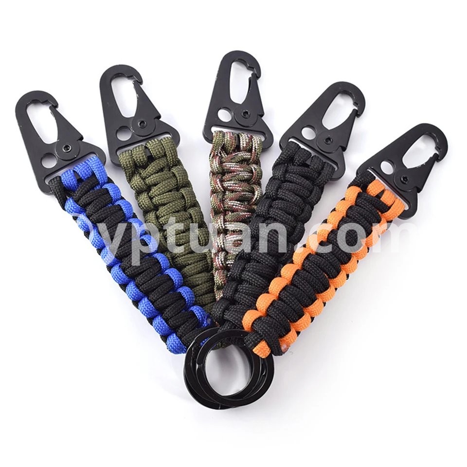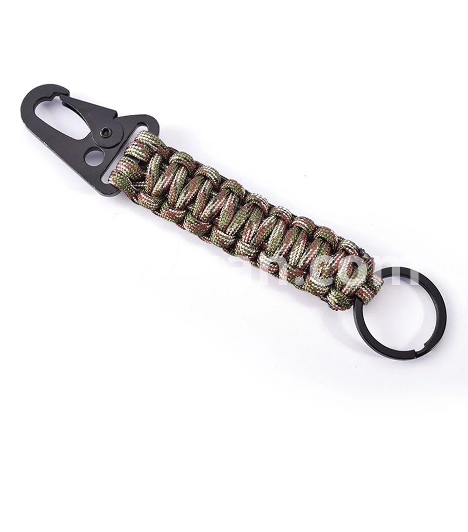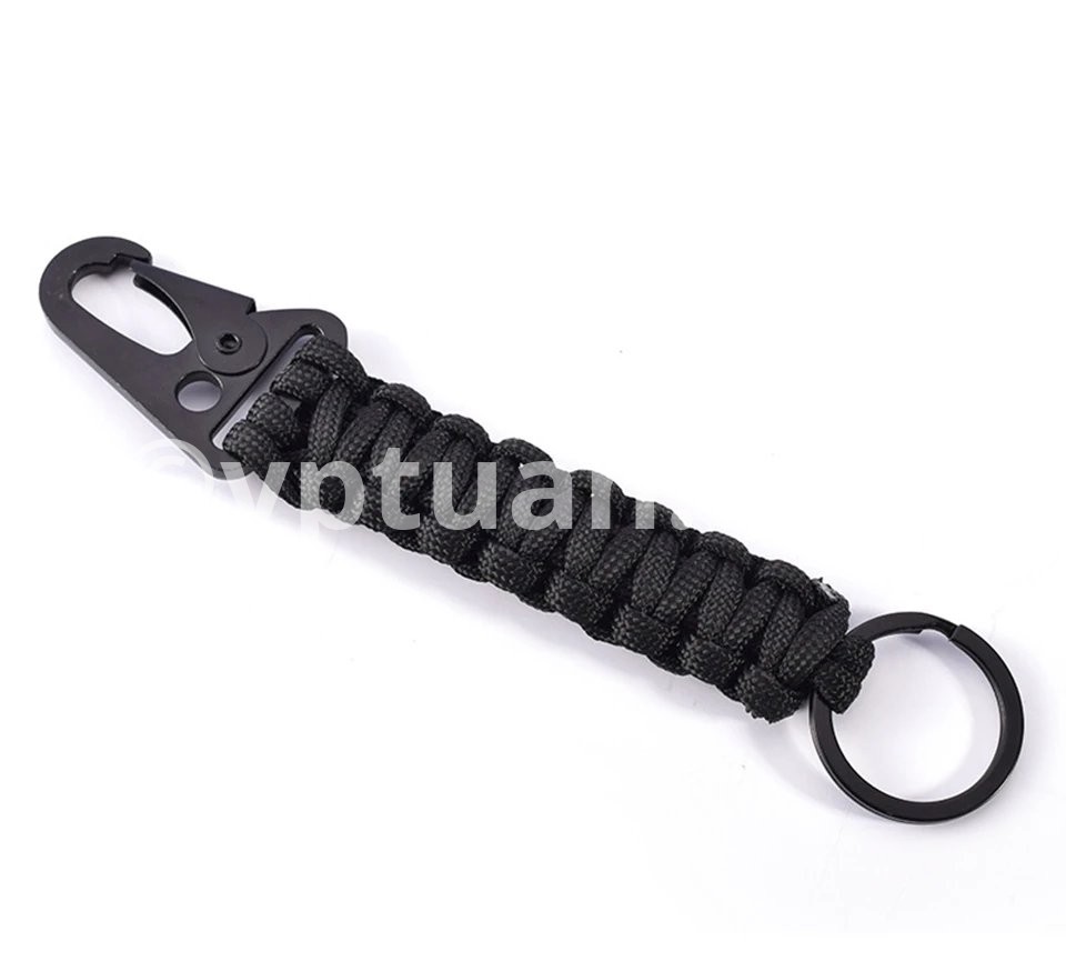 Specification: Name: Brand new with high quality Paracord key ring pendant Color: Black/Army green/Camouflage/Yellow Black/Orange Black Size: about 13.5*3cm Style:with eagle mouth buckle Quantity: 1PC