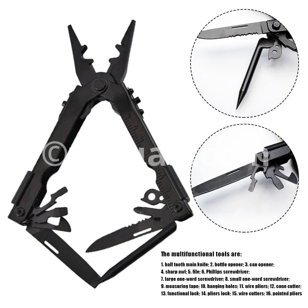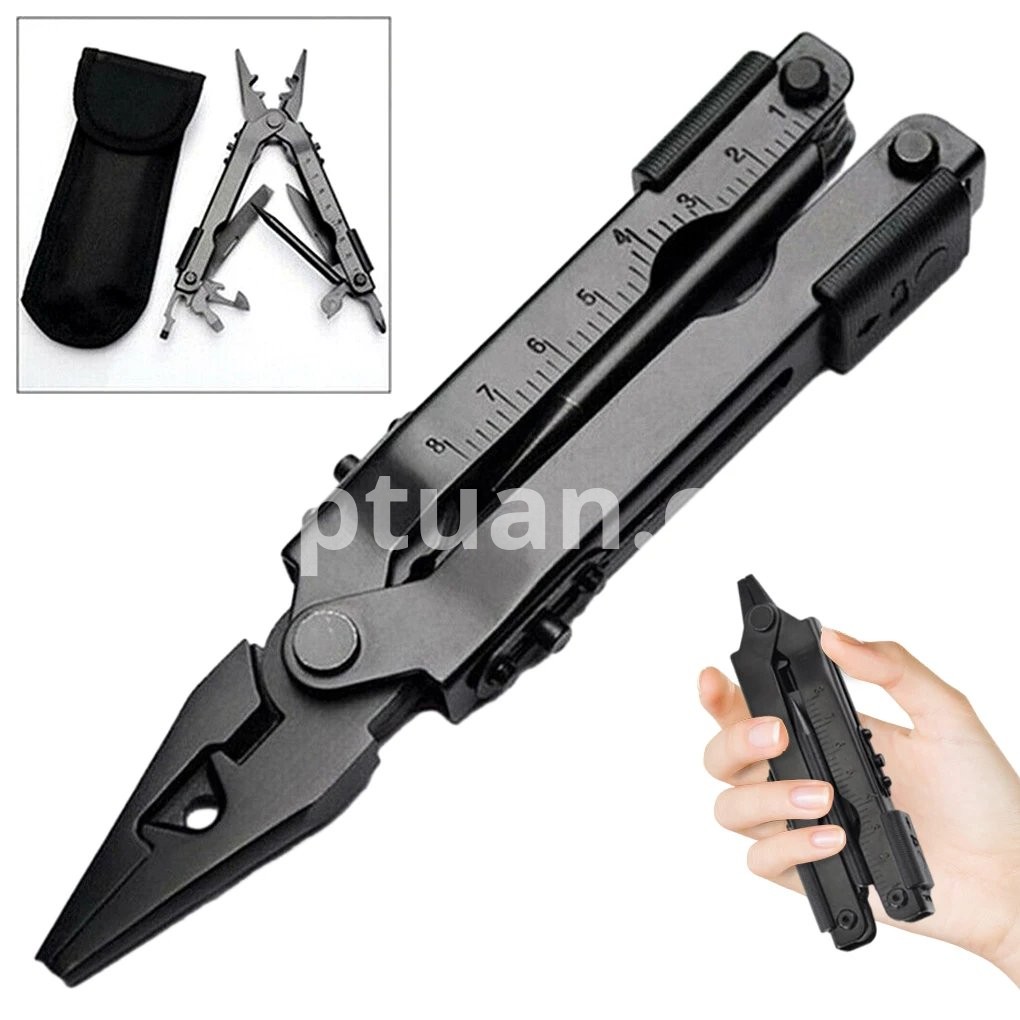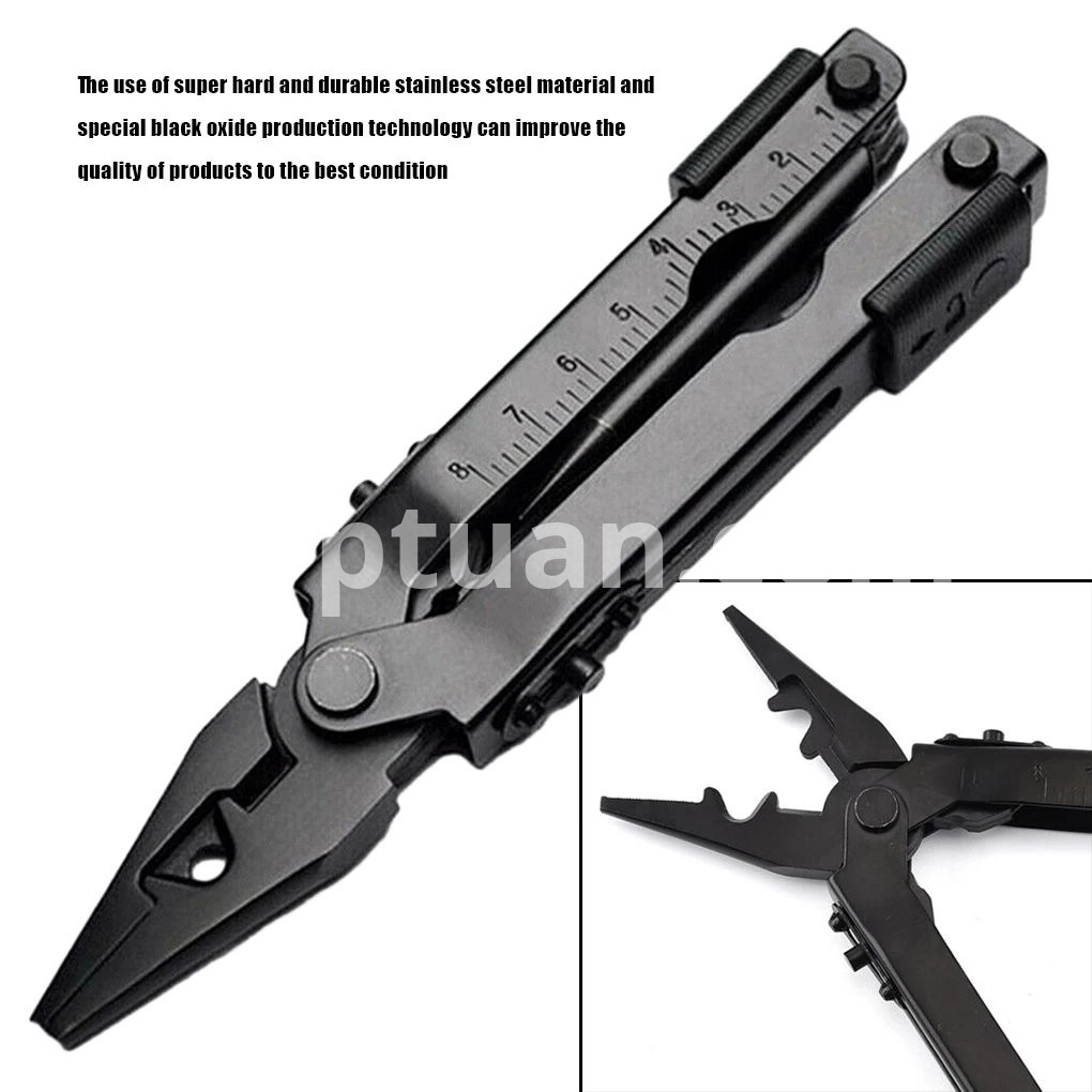 Stainless Steel Portable Tactical Pliers With Cutting Knife For Outdoor Survival Multi Functional Folding Pliers black