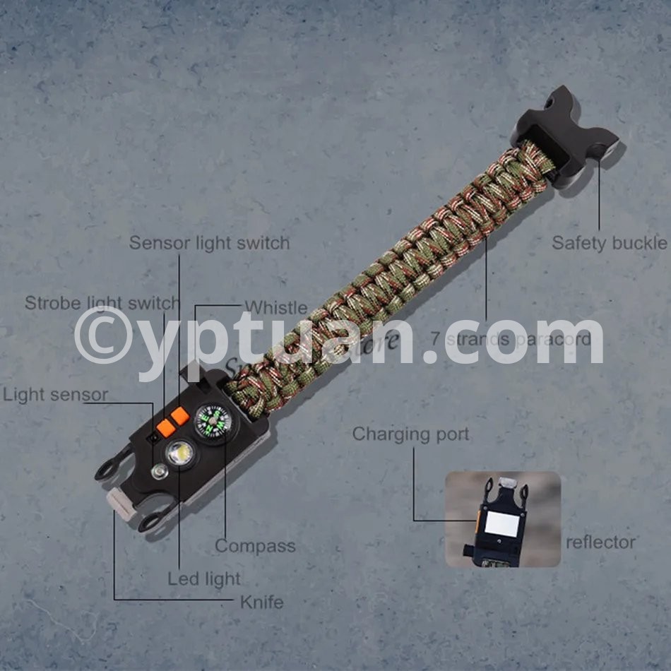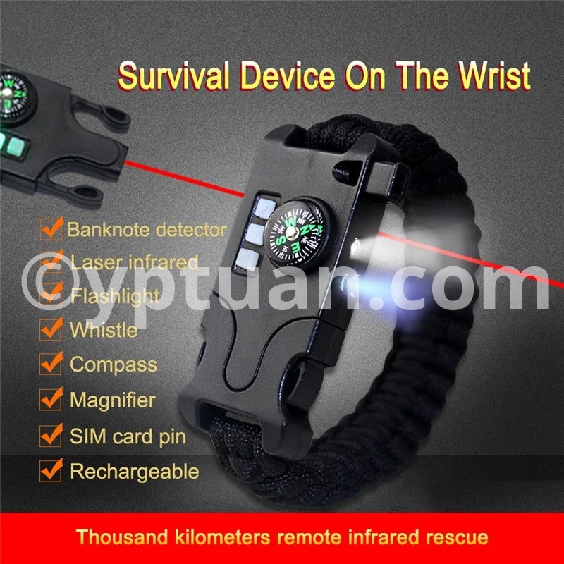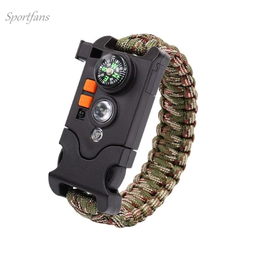 Outdoor Survival Paracord Bracelet Buckle LED Laser Flashlight bracelet Emergency Multi Tool Braided Camping Rescue Rope