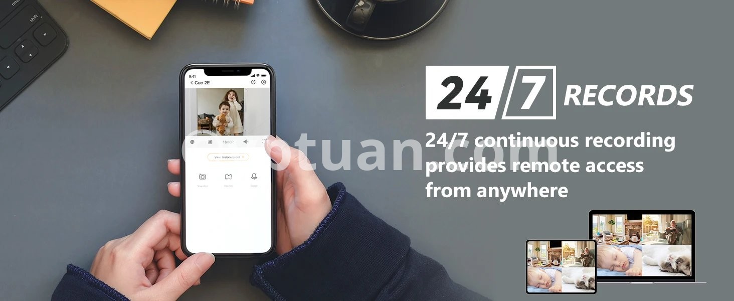 Video is easily stored and accessed through Micro SD card, NVR, or Cloud Storage. Cue 2C supports 7*24 continuous recording.