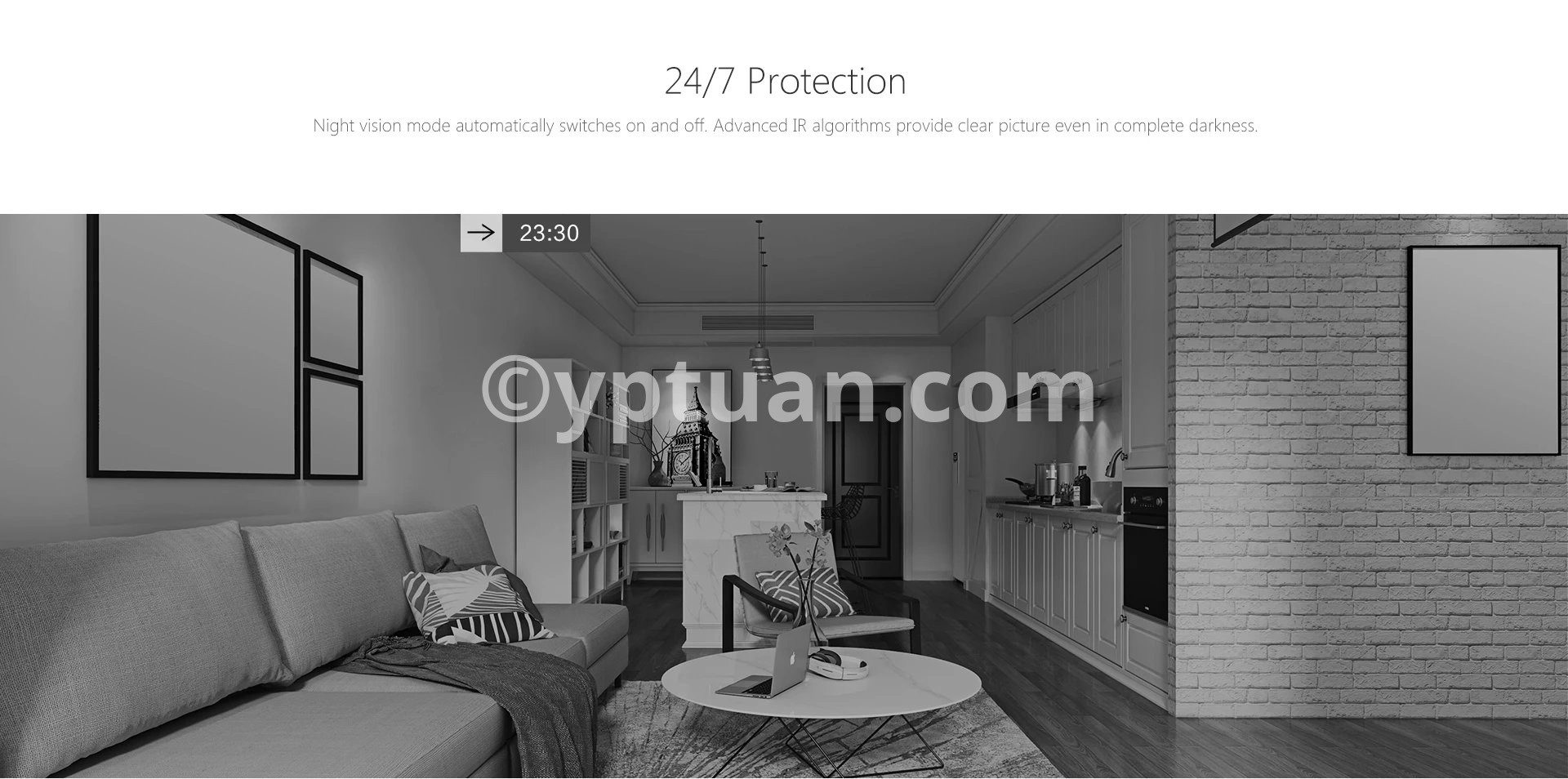 Night vision mode automatically switches on and off. Advanced IR algorithms provide clear picture even in complete darkness.