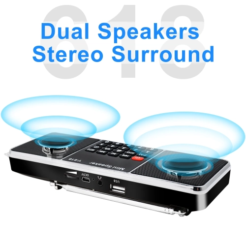 FM Radio Function Dual Channel Digital Speaker Amazing Sound Quality LED screen display Clock function Support TF card / USB Disk MP3 Music Player Breakpoint memory function