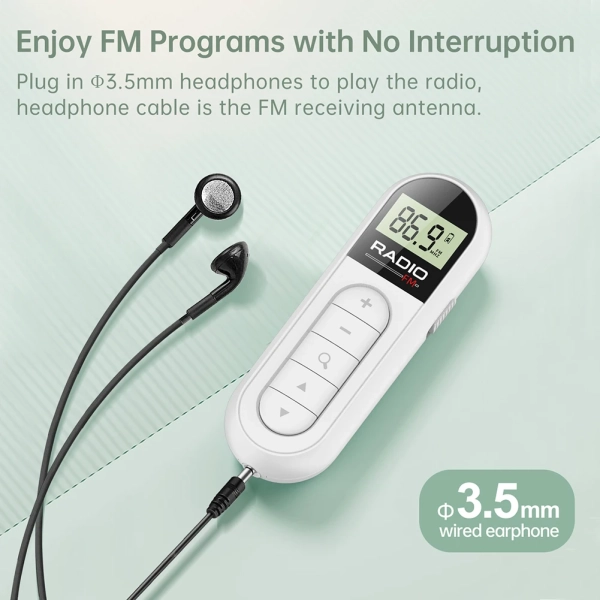 FM Radio Backlight LCD Display Mini Pocket Clip Radio with 3.5mm Headphones Stereo Radio 76-108MHZ for Walk Jogging Camping