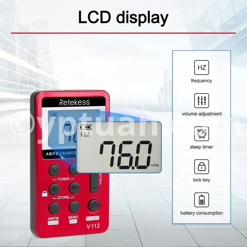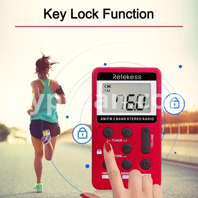 2.LCD display:small size radio with LCD display,which can display the battery consumption,frequency,volume adjustment,the time of the sleep timer,the symbol of lock key.Clear display help you operate the radio easily.Small radio for youngers,older,husband.