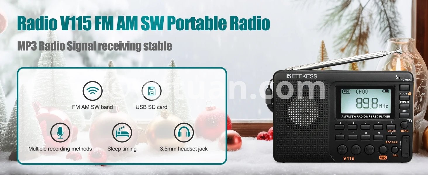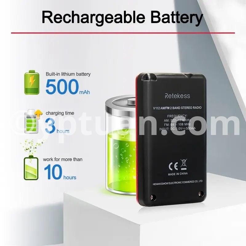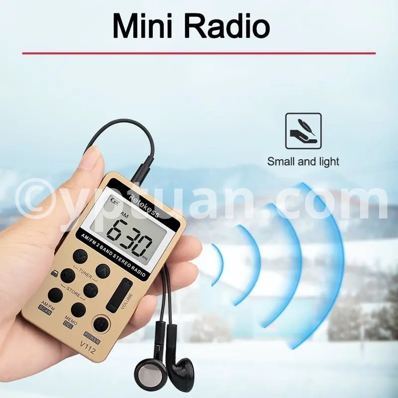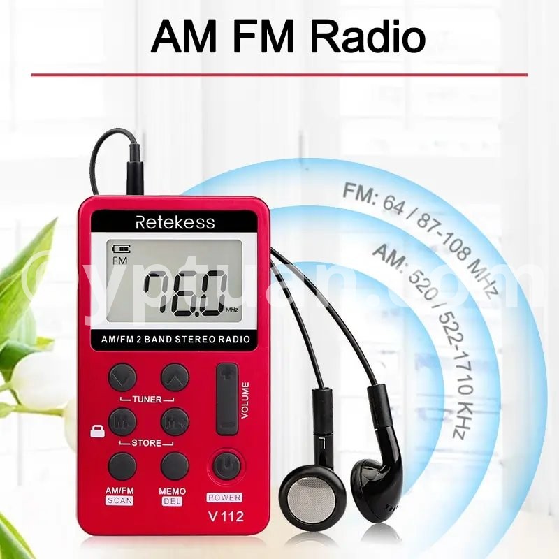 Retekess V112 Radio Mini Pocket Radio Receiver Portable Radios AM FM Rechargeble Sleep Time Earphone For Walkman Go Hiking