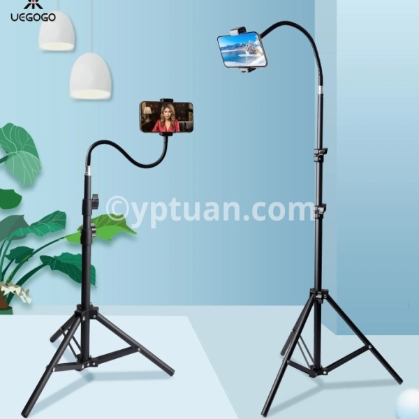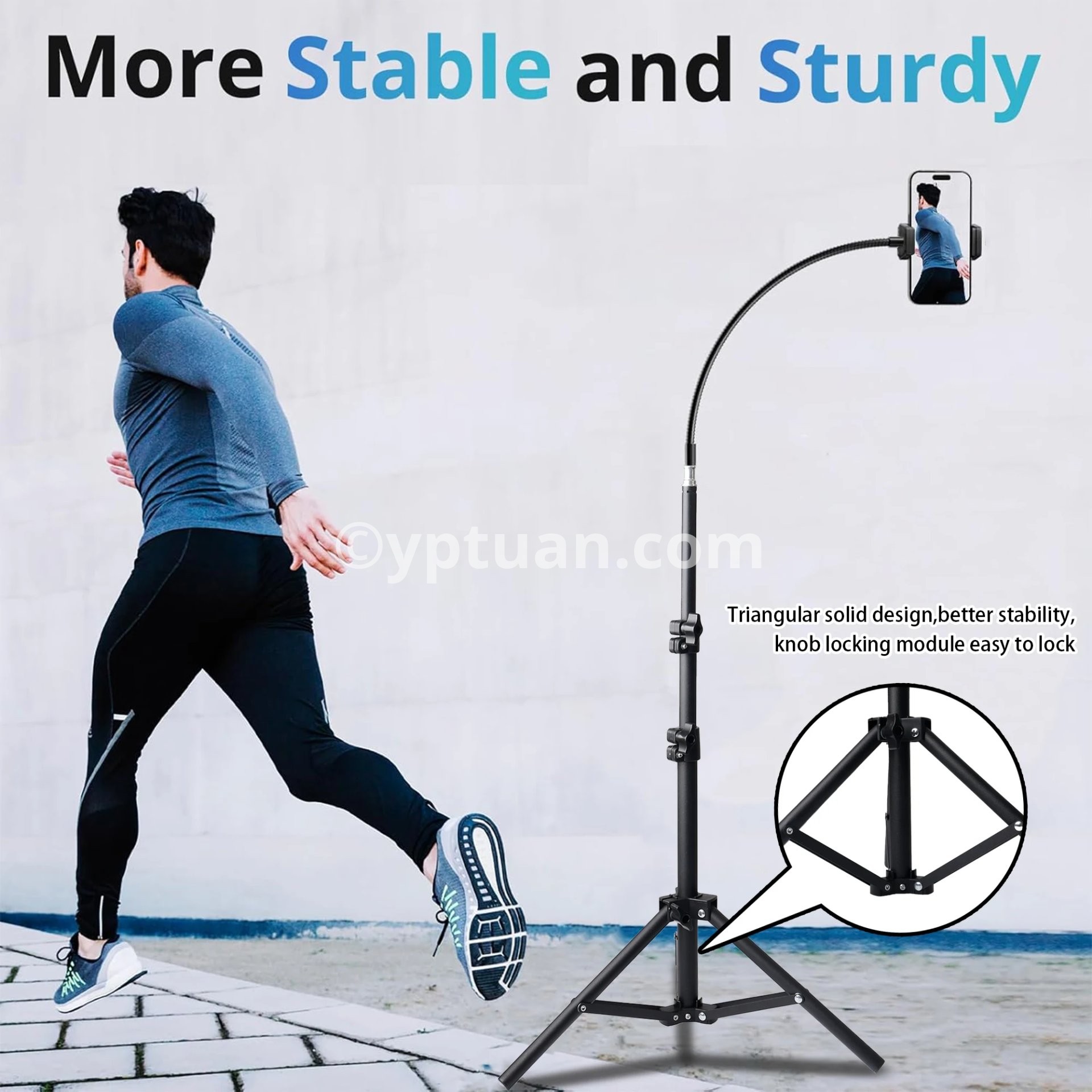 63inch Versatile Iron Tripod with Adjustable Phone Stand, 13.5inch Flexible Angle Adjustment Extension Hose - Perfect for Streaming, Photography & More