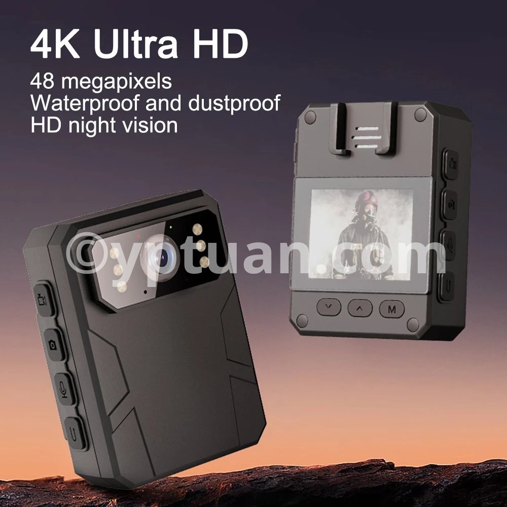 4K/1080P HD Mini Camera 2-inch Color Screen Infrared Night Vision Police Camera Portable Body Worn Camcorder