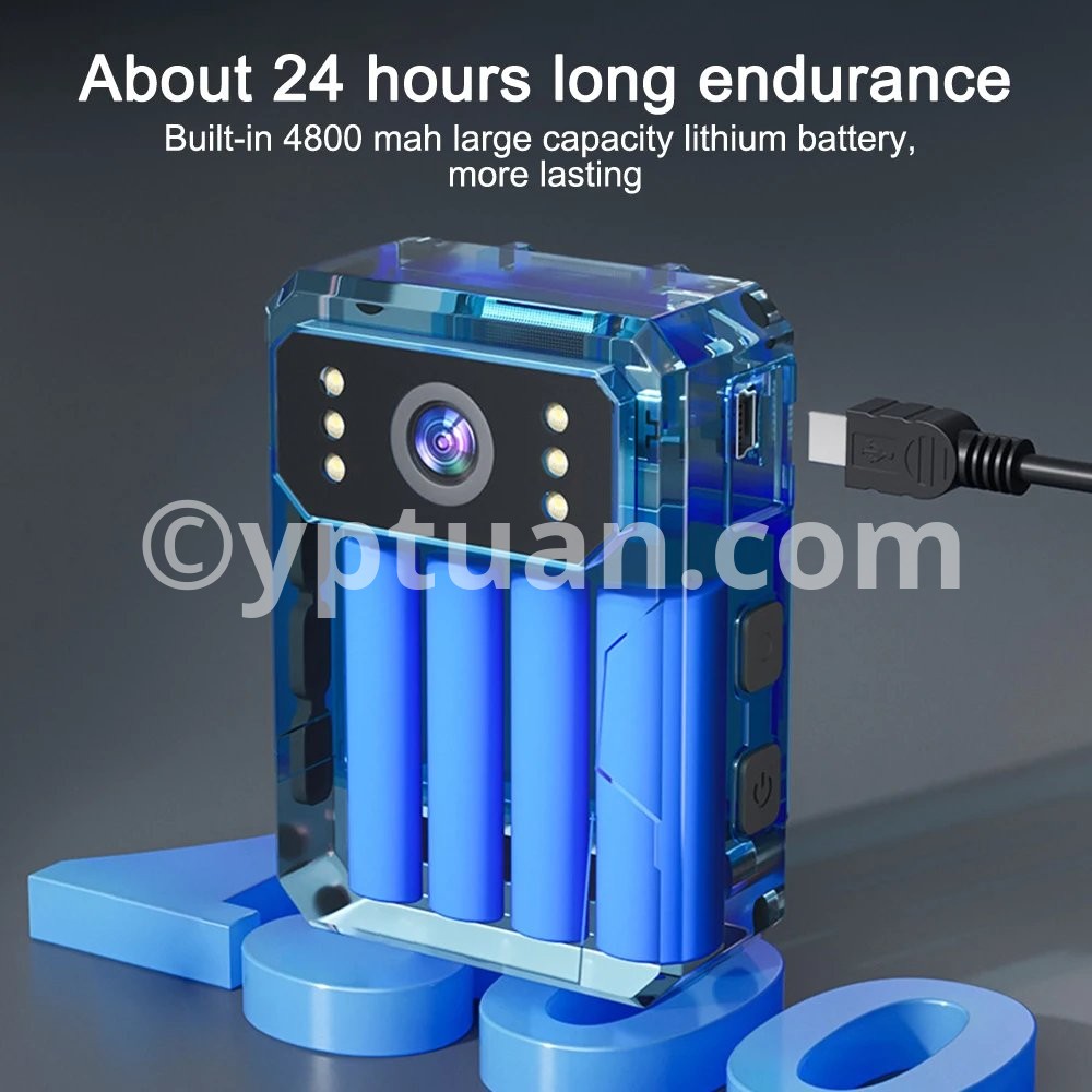 3. It is equipped with a 4800mAh rechargeable battery, providing up to 24 hours of recording time.