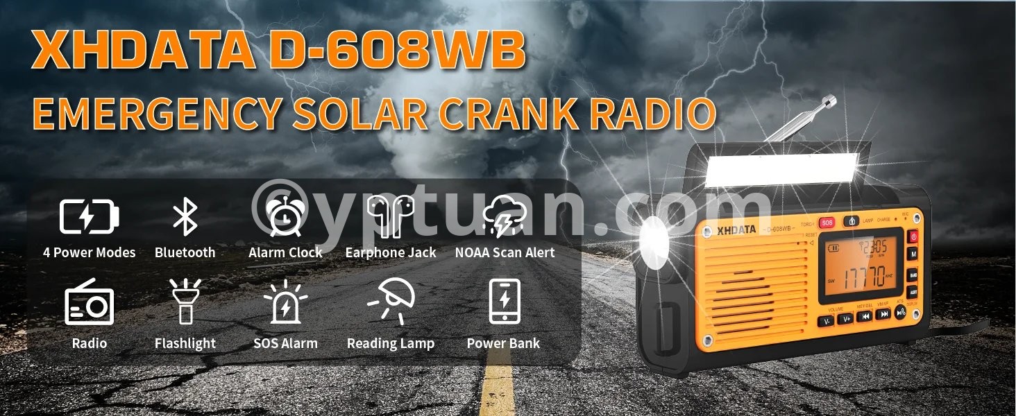 Emergency Crank Solar Radio XHDATA D608WB FM/AM/SW/NOAA Alert Portable Radio Charging 3000mAh Power Bank LED Flashlight Torch