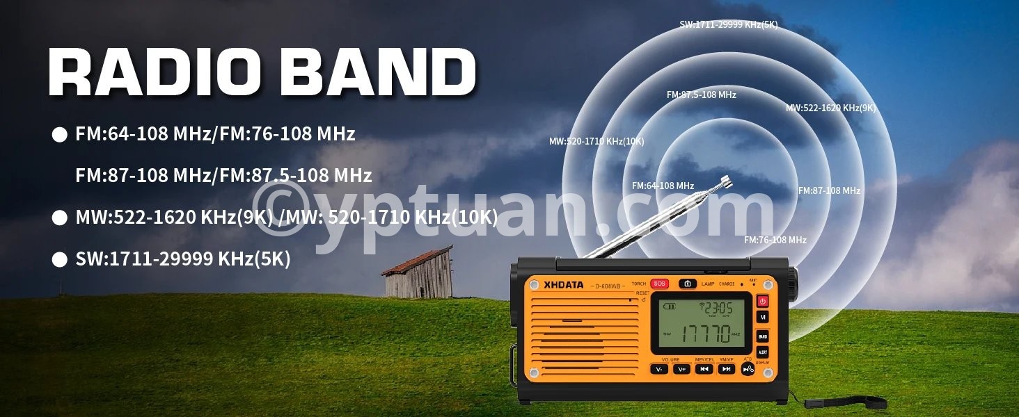 [FM AM SW PORTABLE SHORTWAVE RADIO]-FM/AM/SW portable shortwave receiver with LCD display screen, using DSP chip to enhance the reception sensitivity, not only an emergency weather radio, but also a shortwave radio with powerful FM AM SW reception, allowing you to listen to radio from all over the world whenever and wherever you are. FM 64-108MHz, AM 520-1710KHz/522-1620kHz, SW 1711-29999KHz
