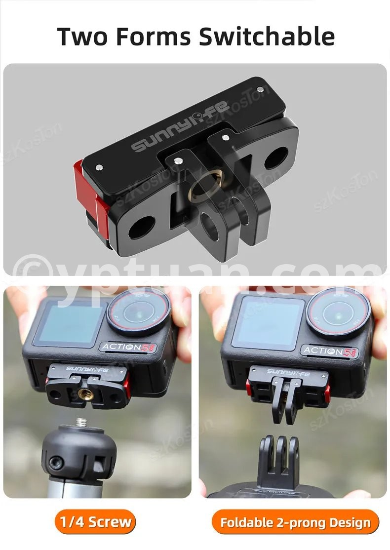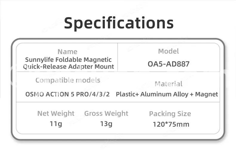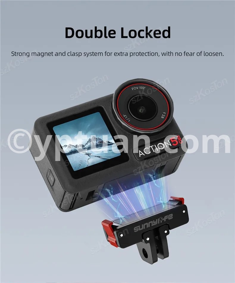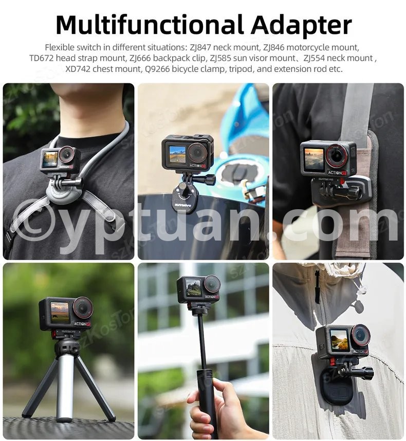 Features: Compatible with Osmo 360/NANO/Action 5 Pro/4/3/2. Magnetic Clasp with Claw Buckle for Double the Stability. Powerful Magnetism Paired with an Aluminium Alloy Claw Buckle Ensures Secure Mounting During Action Shots, Unaffected by Jolts. Metal Dual-Claw Limit Stop Buckle for Secure Installation That Won't Come Loose Even During Vigorous Shaking. 1/4" Threaded Socket and Foldable Dual-Claw Mount Offer Dual-Form Interfaces for Versatile Device Compatibility. Extensive Adapter Range Facilitates Connection to Neck Straps, Motorcycle Mounts, Headbands, Backpack Clips, Sun Visor Mounts, Chest Straps, Bicycle Mounts, Tripods, Extension Poles and More. Specifications: Compatible Models: Osmo 360/Action 5 Pro/4/3/2 Materials: Plastic + Aluminium Alloy + Magnets + Silicone Net Weight: 11g Gross Weight: 13g Packaging Dimensions: 120*75mm