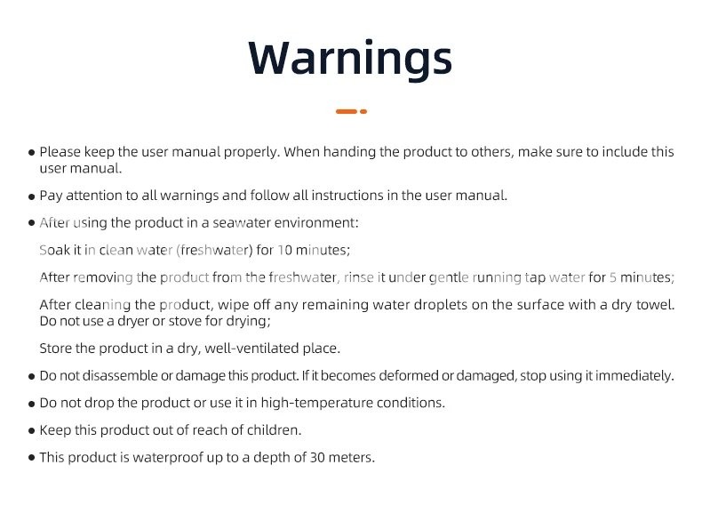 5.Waterproof up to 30 Meters
