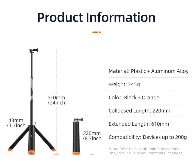 TELESIN Buoyancy bar Diving Extendable Underwater Selfie Stick Tripod For Gopro Insta360 DJI OSMO Action Camera Accessories