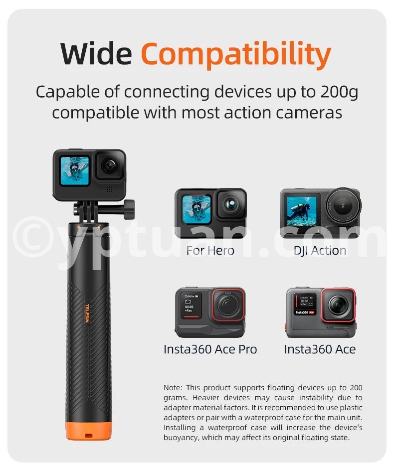 Capable of connecting devices up to 200g compatible with most action cameras