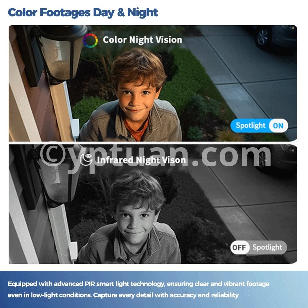 Equipped with advanced PIR smart light technology, ensuring clear and vibrant footage even in low-light conditions. Capture every detail with accuracy and reliability