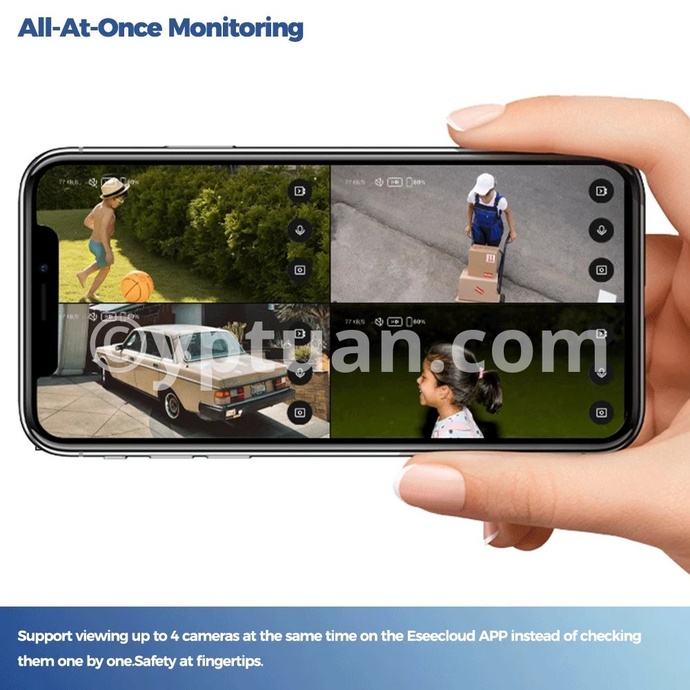 Support viewing up to 4 cameras at the same time on the Eseecloud APP instead of checking them one by one.Safety at fingertips.