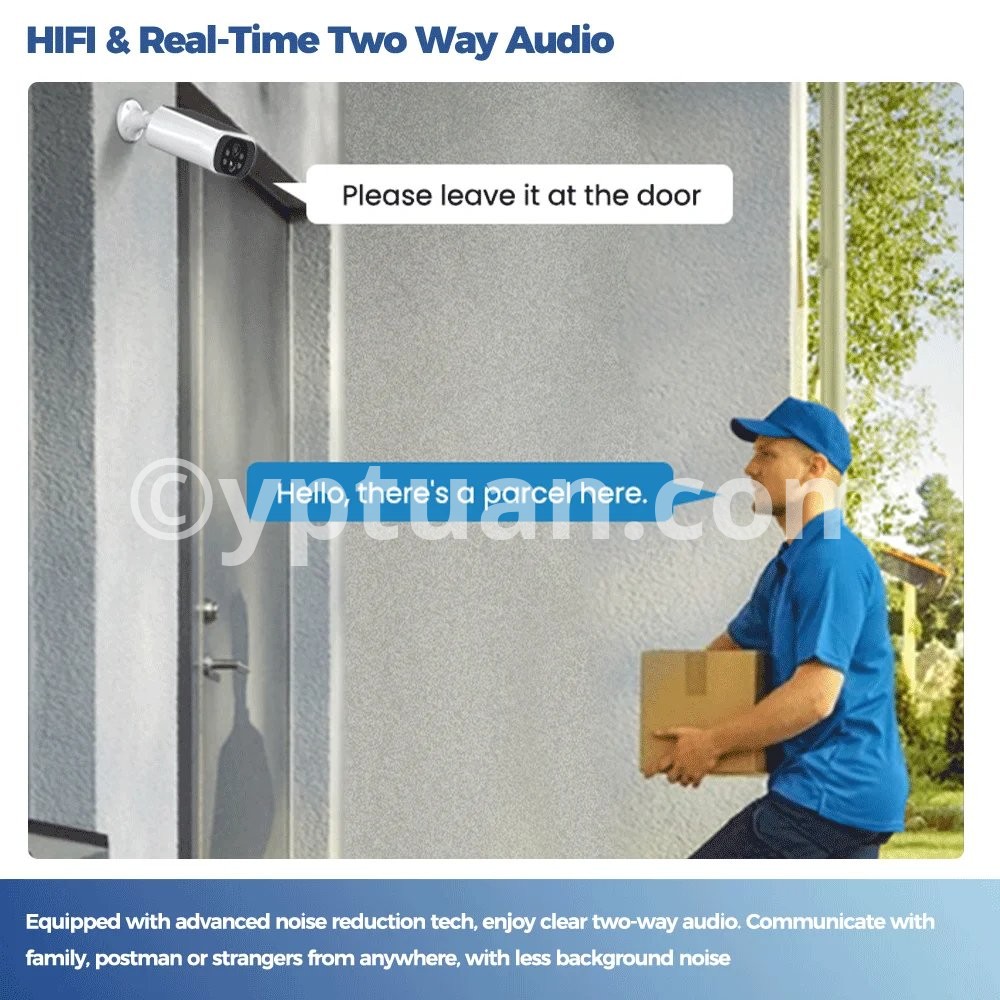 Equipped with advanced noise reduction tech, enjoy clear two-way audio. Communicate with family, postman or strangers from anywhere, with less background noise