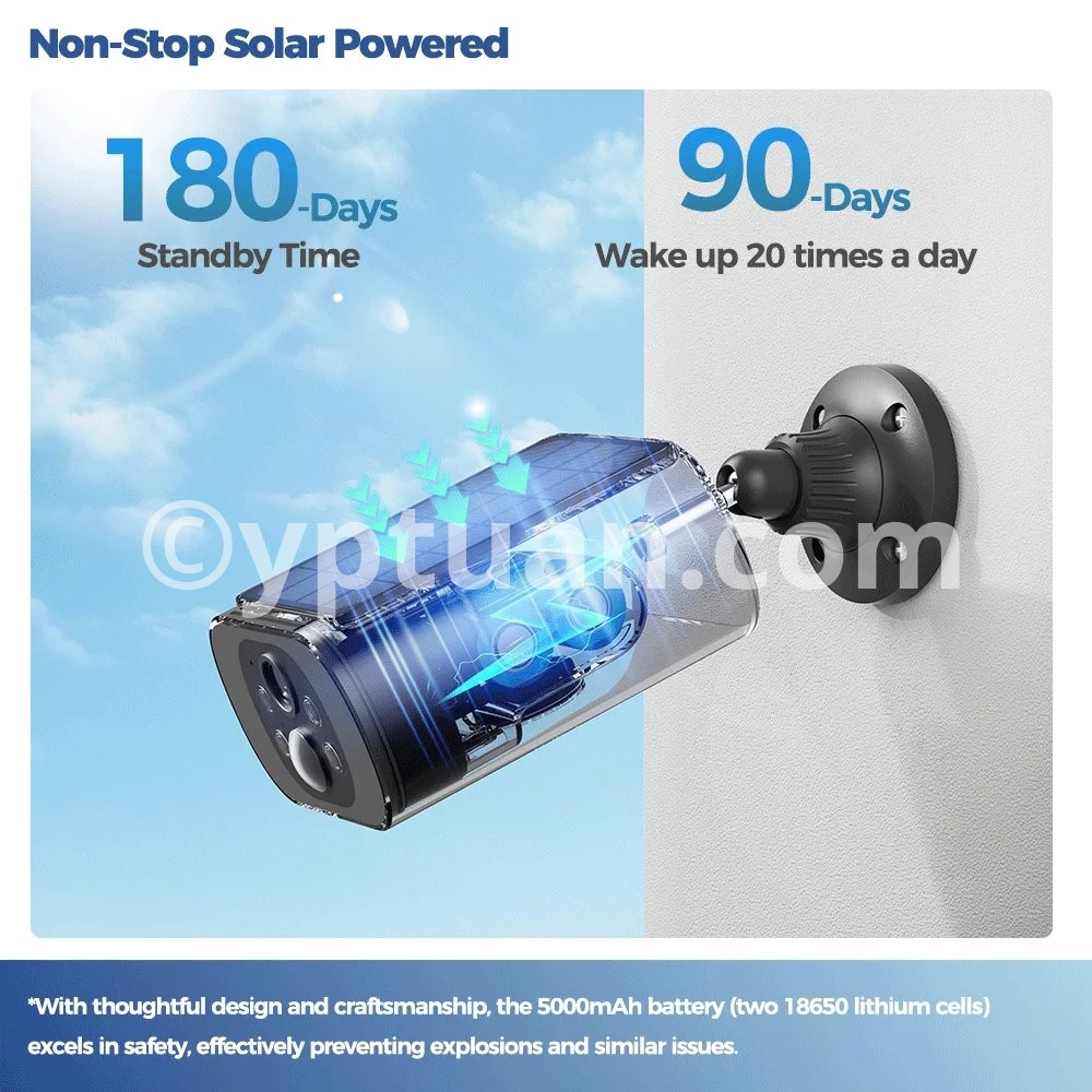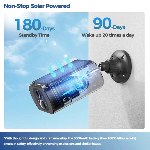 ALEVIO Solar Camera Outdoor WIFI Wireless Security Cam 2.5K Ultra Standby Time PIR Light Color Night Vision AI Detect CCTV Cam