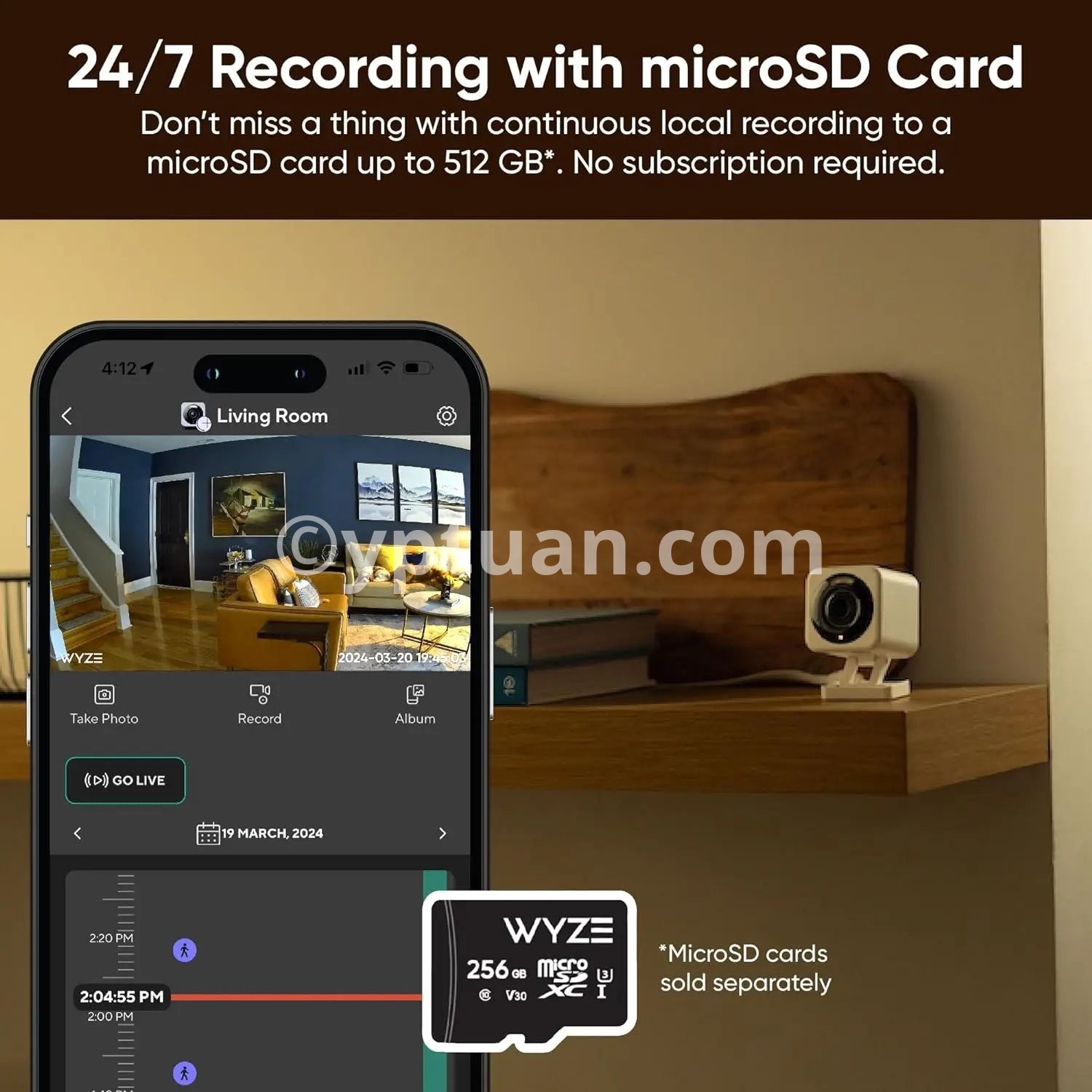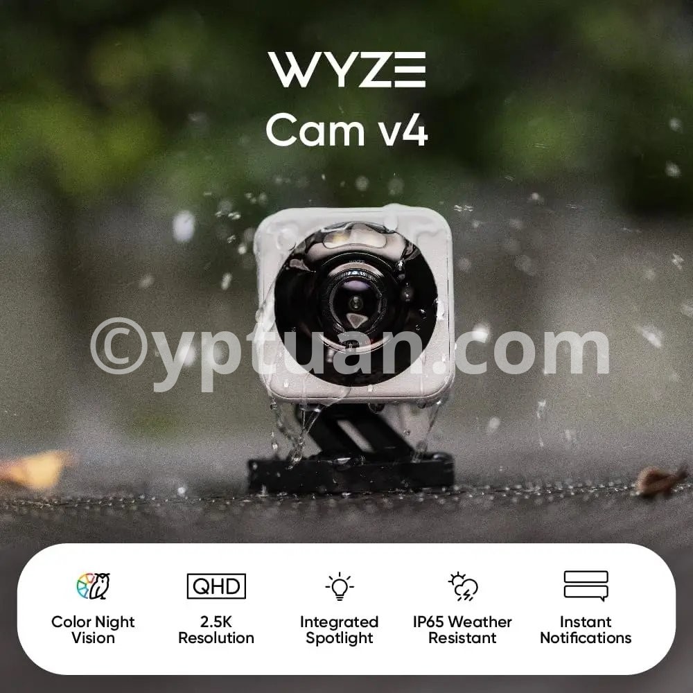 ✦2.5K QHD Resolution: Capture images and video with Quad High-Definition clarity in greater detail. ✦Enhanced Color Night Vision: Night or day, see everything in vivid color and clarity, ensuring no detail is missed even in the darkest conditions. ✦Indoor/Outdoor Versatility: Engineered for durability with IP65 weather resistance, the Wyze Cam v4 offers reliable house surveillance in any weather, perfect for both indoor and outdoor settings. ✦Motion-Activated Spotlight + Voice Warning: Enhance your home's security with an LED spotlight and voice prompts activated by motion, coupled with a built-in siren for additional deterrence. ✦More Vibrant Color with WDR: Featuring an upgraded image processor, experience Wide Dynamic Range technology that brings out vibrant colors and superior image quality. ✦Clearer Conversation with Enhanced Audio: Communicate clearly thanks to a powerful amplifier and updated microphone, enhancing the clarity of conversations through your camera. ✦24/7 Local Recording: Secure continuous recording on a microSD card up to 512 GB (sold separately) for 24/7 coverage without the need for a subscription.