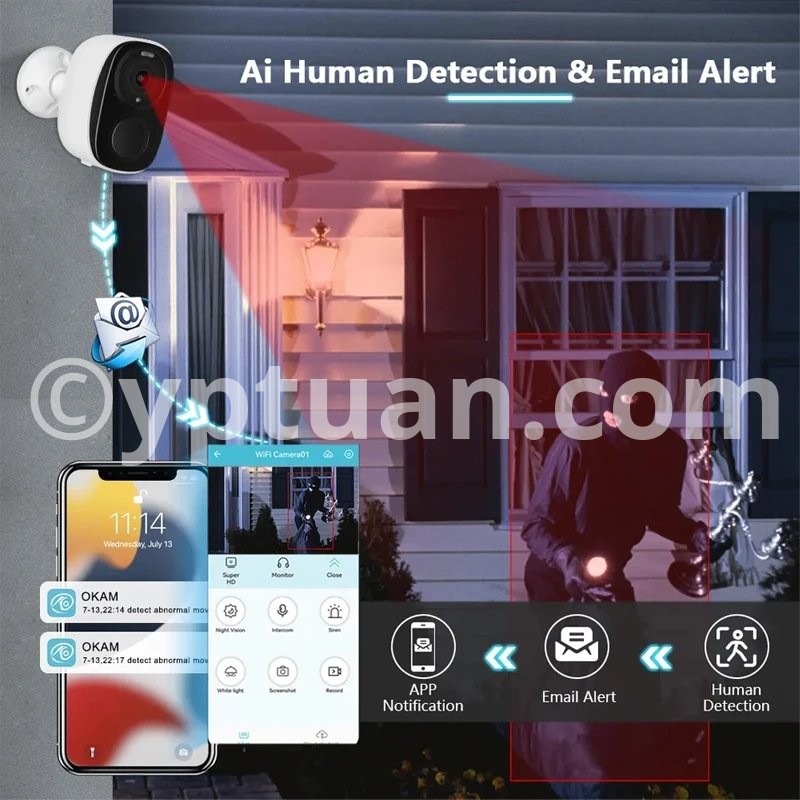 Security Cameras Wireless Outdoor, 2K 3MP Battery Powered WiFi Security Camera with Spotlight Siren, 2-Way Audio, Waterproof