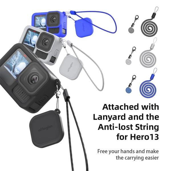 For GoPro 13 Black Silicone Protector Case Rubber Lens Cap Cover with Hanging Rope Black Blue Grey Skin for GoPro 13 Accessories