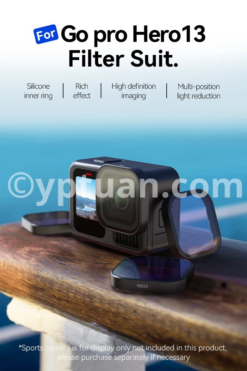 【Crystal Clear Optics with Multi-Layer Coating】TELESIN Lens Filter Kit CPL ND8 ND16 ND32 filter Made with premium high-definition glass and multi-layer coating technology, ensuring your camera lens remains crystal clear and fully protected. Designed specially for GoPro Hero 13 Black.