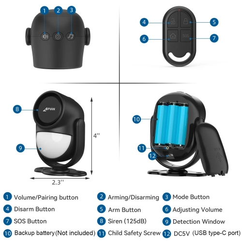 Remote control: the CPVAN motion sensor alarm can be paired with a remote control (included) to allow remote control. You no longer have to worry about not being able to operate the motion sensor alarm immediately because it is mounted too high and too far away. Alternatively, you can control multiple motion detector alarms simultaneously with a single remote control or a motion sensor alarm with multiple remote controls.