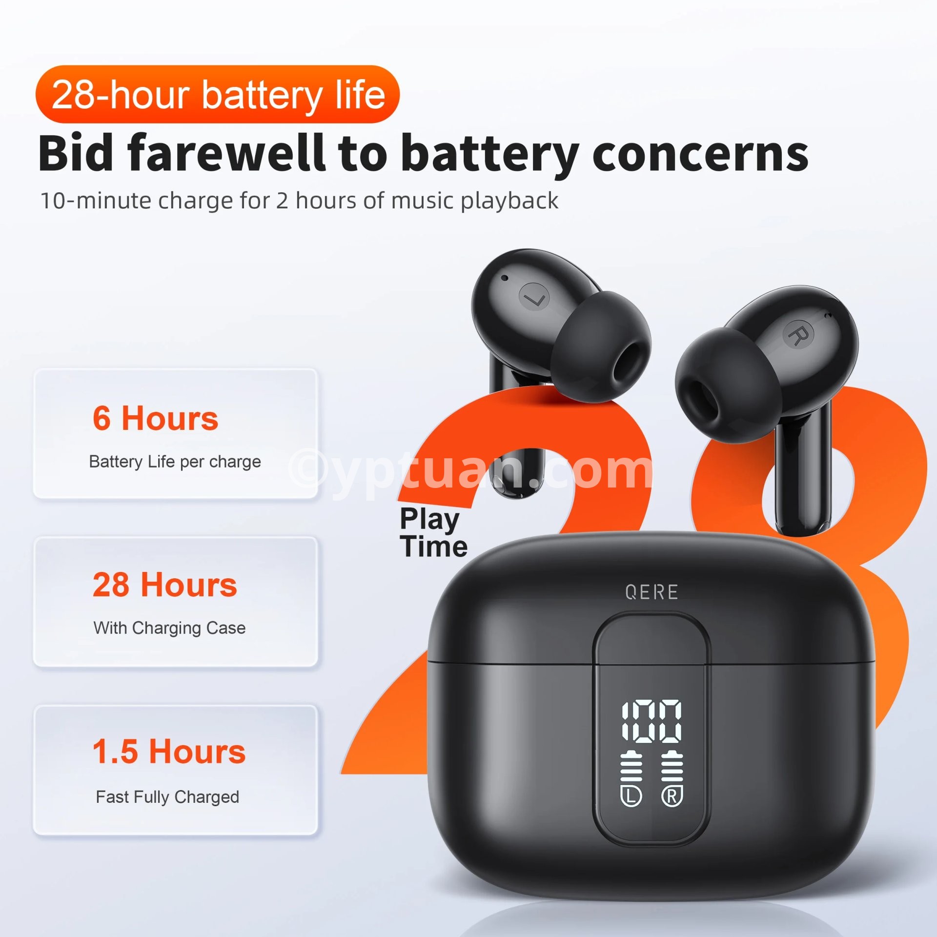 QERE E50 Wireless Headphones, TWS Bluetooth 5.3,HD Microphone,HIFI Earphones,13mm Driver,60ms Low Latency,4 Mics, ENC Call, New