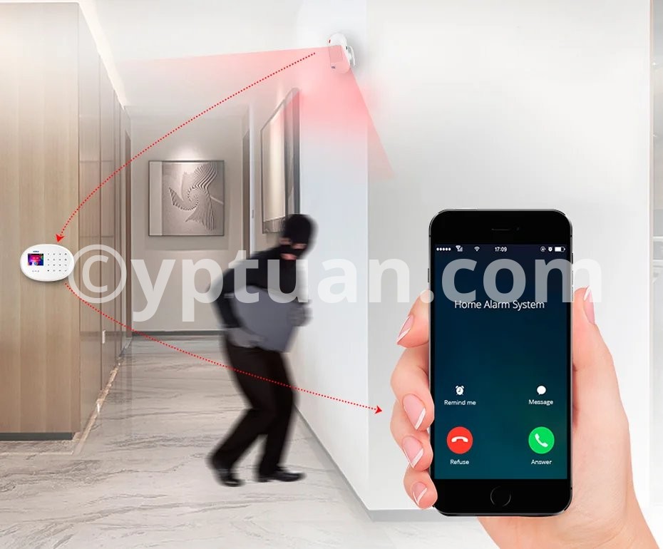 When the Motion Detector be triggered,it will sound and send signal to the system panel.The alarm system host will sound and send SMS/call to you preset phone number.You will receive the notification at the first time