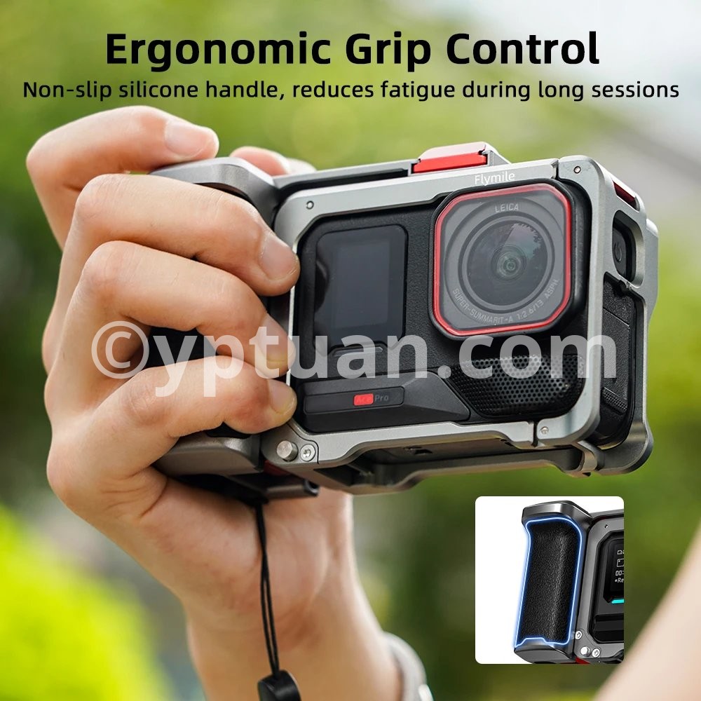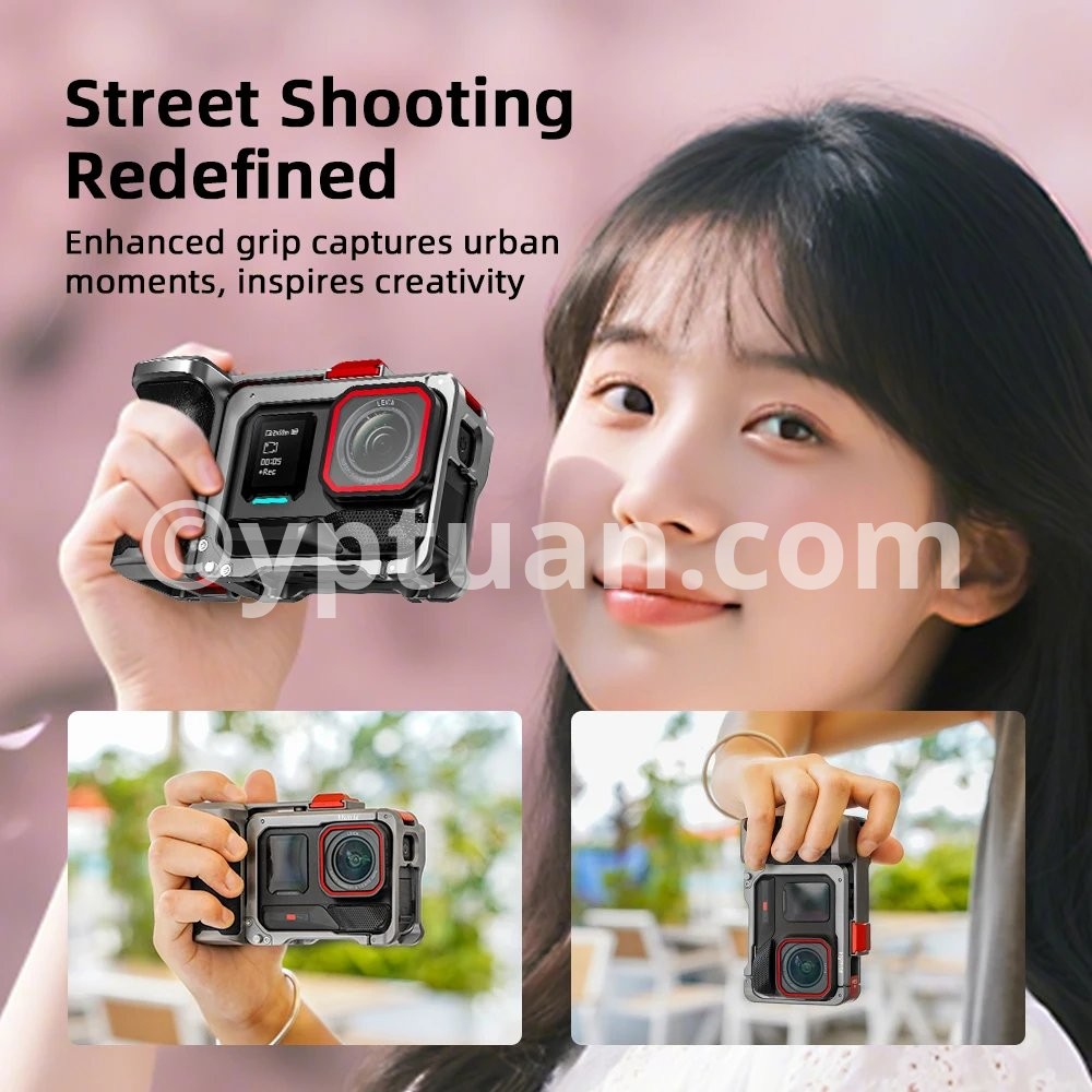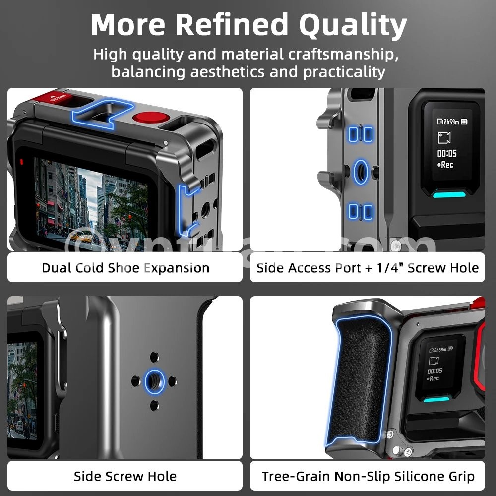 Feature: 1.Aerospace Aluminum: Shockproof alloy body, protects Ace Pro 2 in outdoor shoots. 2.Street Shooting Redefined:Enhanced grip captures urban moments, inspires creativity. 3.Ergonomic Grip Control:Non-slip silicone handle, reduces fatigue during long sessions. 4.Cold Shoe on Shutter:Built-in cold shoe for mics/lights, expand creativity instantly. 5.1/4" Screw Base:Connect tripods/gimbals for stable multi-angle filming. 6.Modular Cage Design:Use cage alone or with grip, adapts to any scene. 7.Quick Battery Access:Remove shutter part to swap batteries in seconds. 8.Thumb Groove for Screen:Flip screen smoothly with one hand, frame shots faster. 9.Free Safety Wrist Strap:Secure your camera for dynamic shots and low angles. Description: Material: Aluminum alloy Applicable models: For Insta360 Ace Pro/2 Color: Gun color Net weight:7.05oz(199.9g) Package weight:/9.01oz(255.6g) Product size:4.21*2.83*2.16in(10.7*7.2*5.5cm) Package size:6.1*3.14*2.75in(15.5*8*7cm) Packing list : Handle*1/Shutter button*1/ Rabbit cage*1/ Hand rope*1/ Lens cover*1 Note: 1. The shipment does not include sports cameras and other accessories, 2.Since the size and weight are manually measured, due to different measurement methods, there may be a certain error between the weight and size of the product, but this error does not affect the normal use of the product, please confirm that you know and accept the error before purchasing,, 4.Due to the difference between different monitors, the picture may not reflect the actual color of the item,please make sure you do not mind before ordering, Thank you!