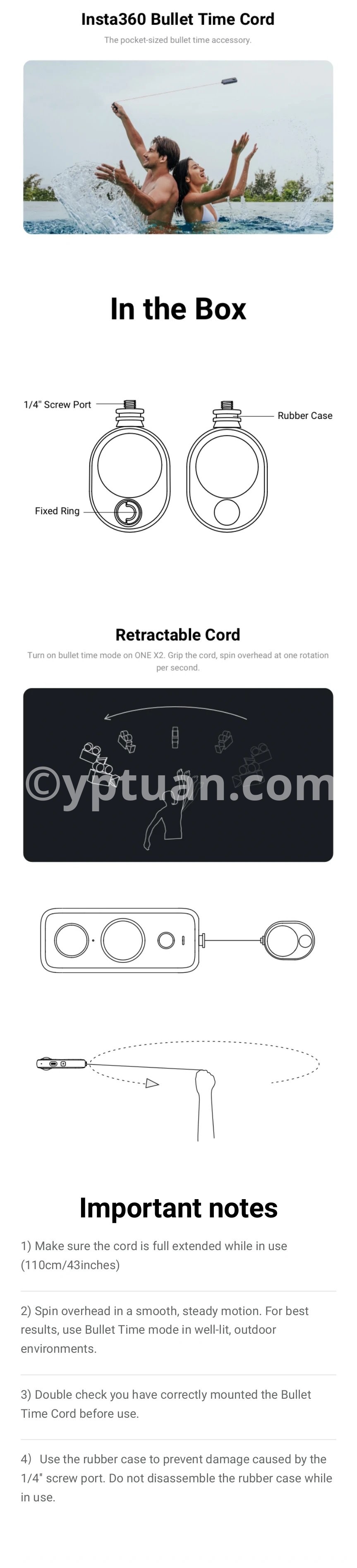 - The Bullet Time Cord is a handheld retractable cord for swinging your camera in any direction. Cannot be used with the selfie stick.