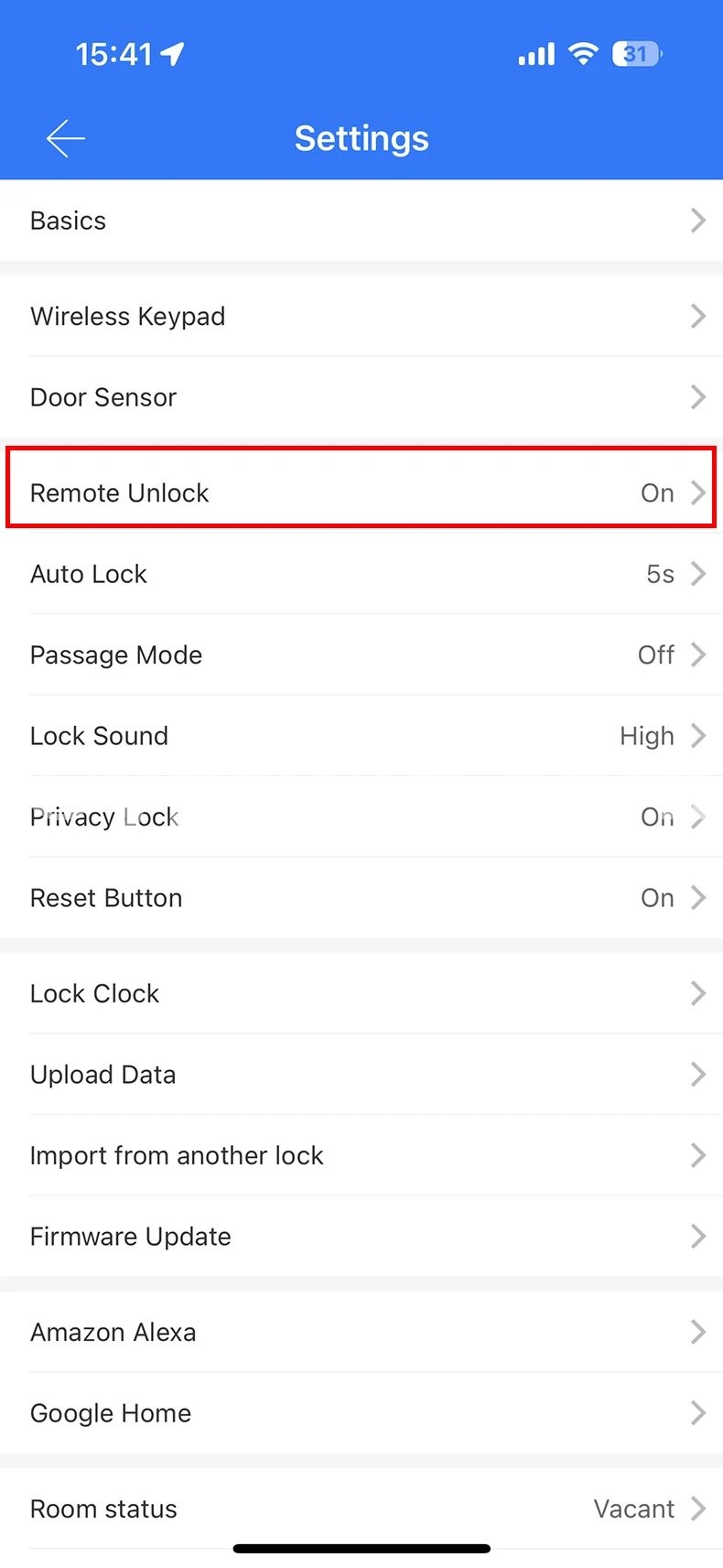 1. Enable the "Remote Unlock" option on the setting of your lock.