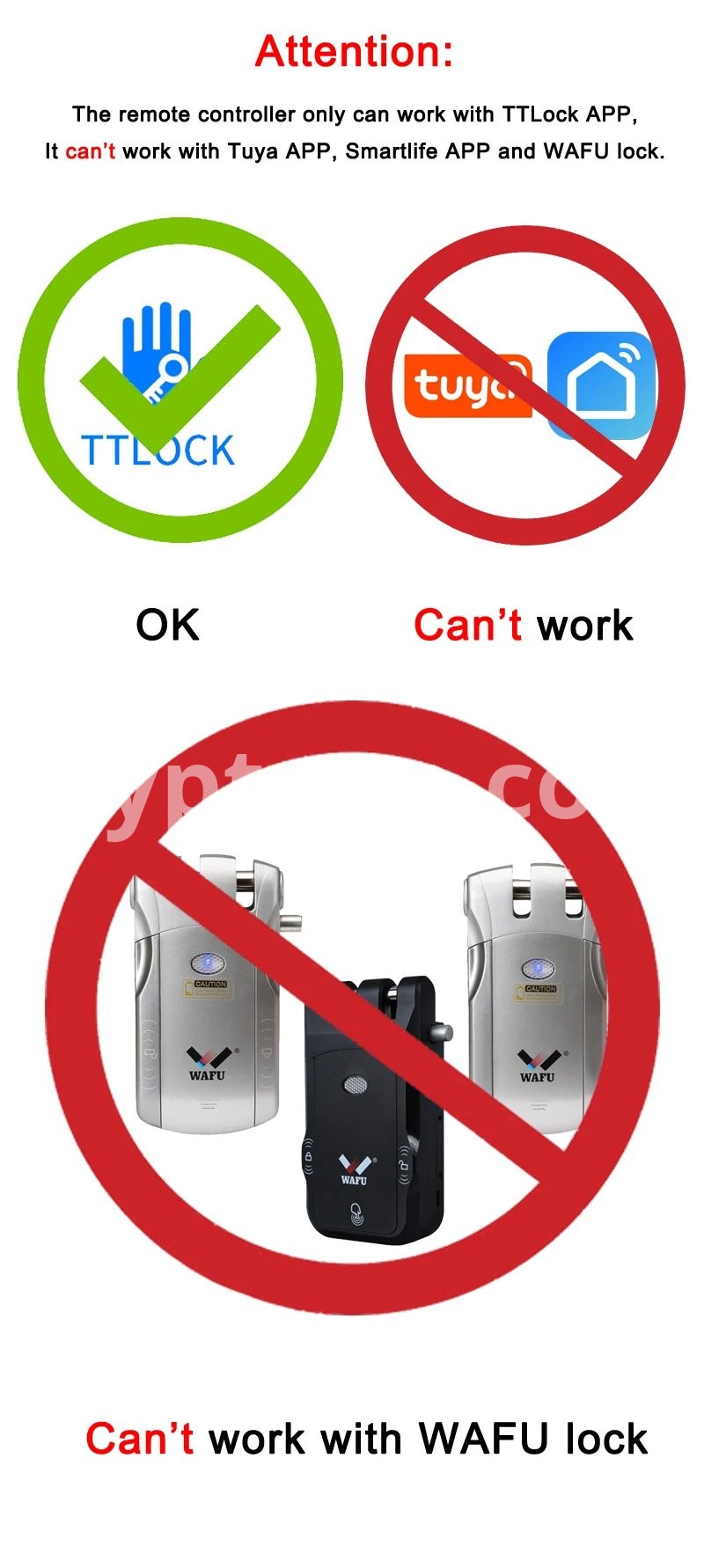 1, The remote control only can use for TTLock APP device. But it's not all TTLock device can use this remote control, it should have wireless key fob option on your TTLock APP, and your ttlock module support remote control function.