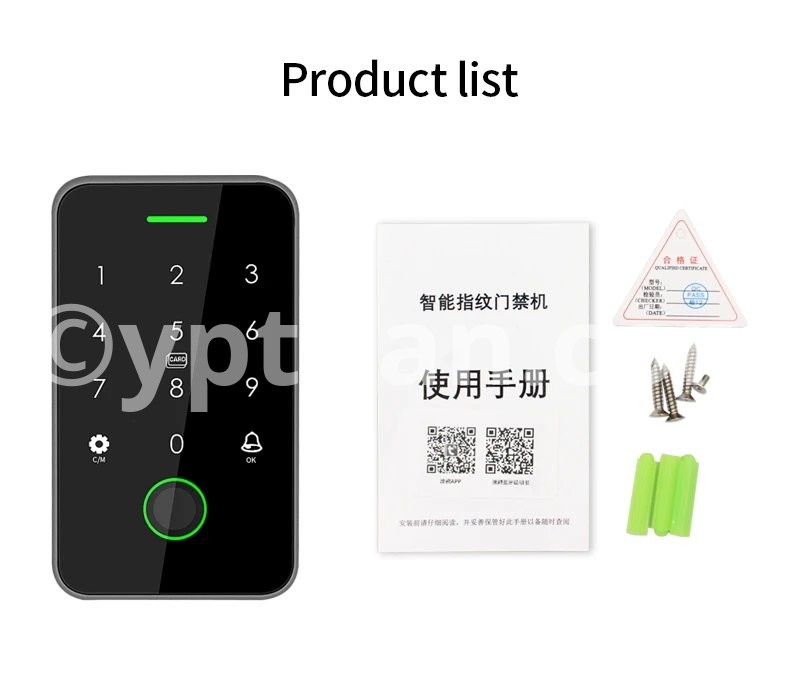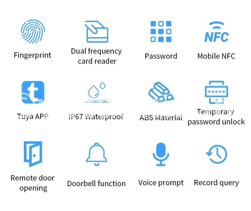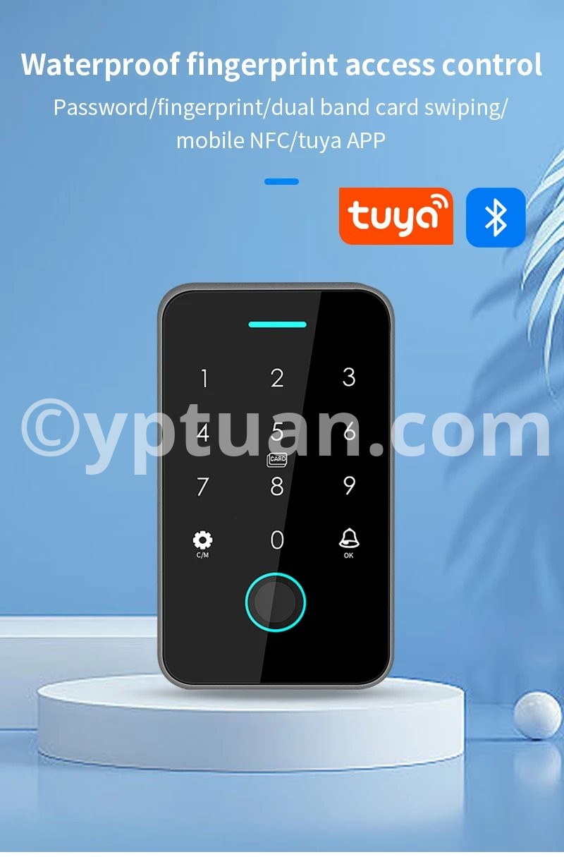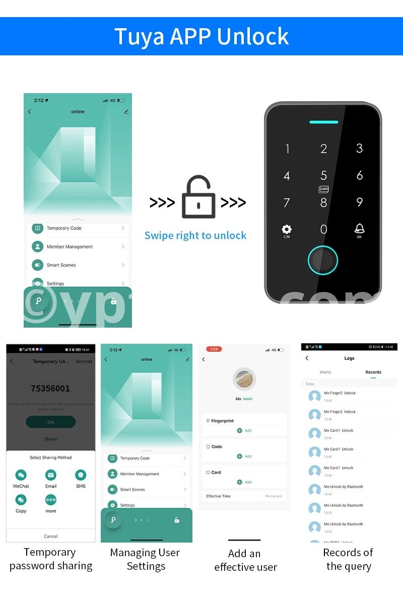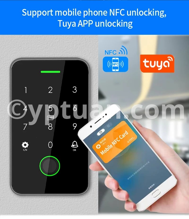 ldentification method: Fingerprint, RFID Card, Password, Tuya APP.