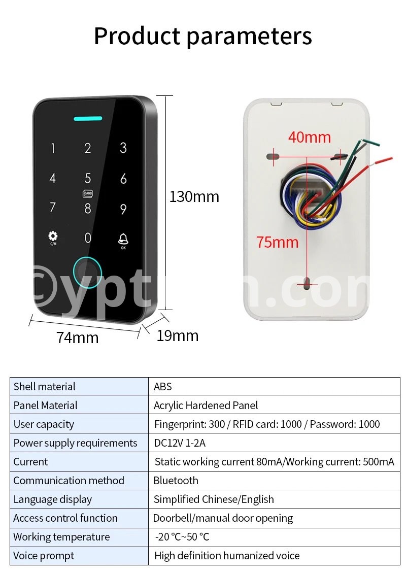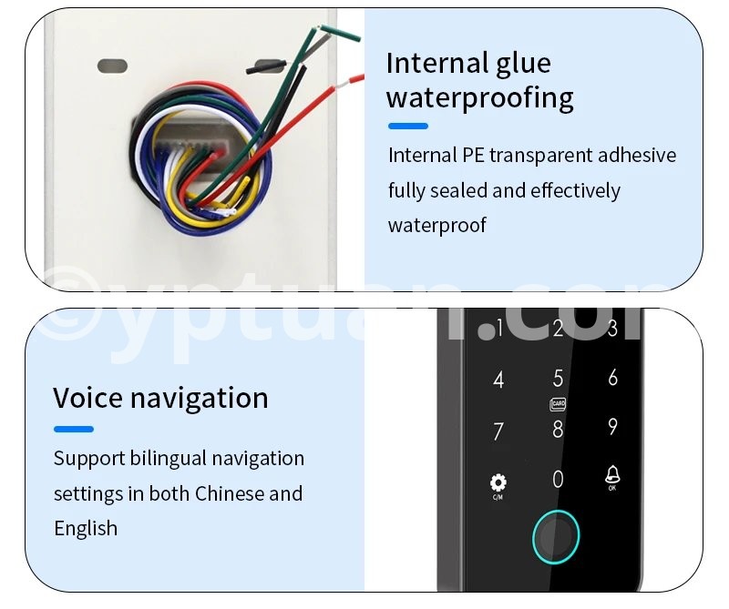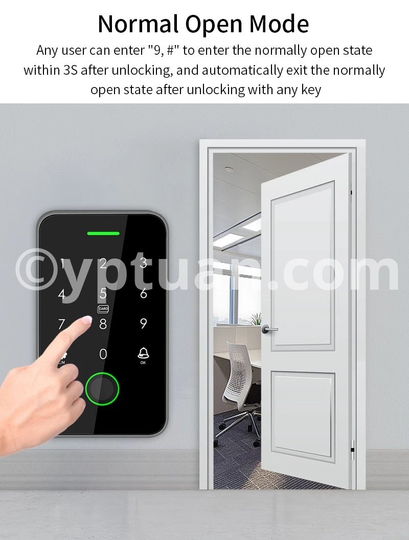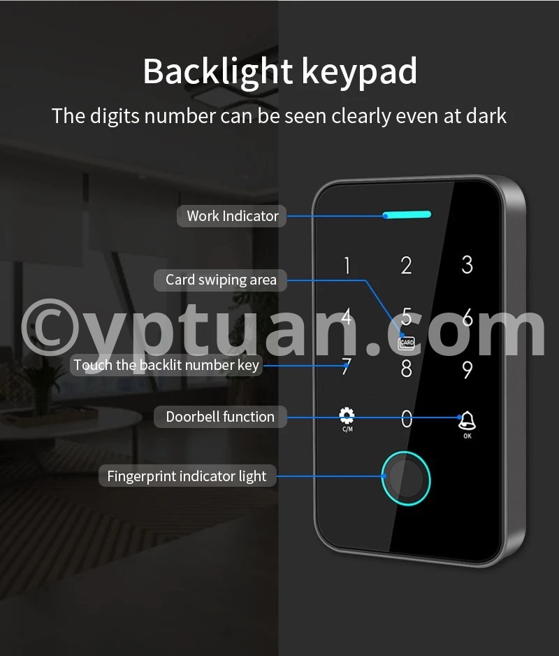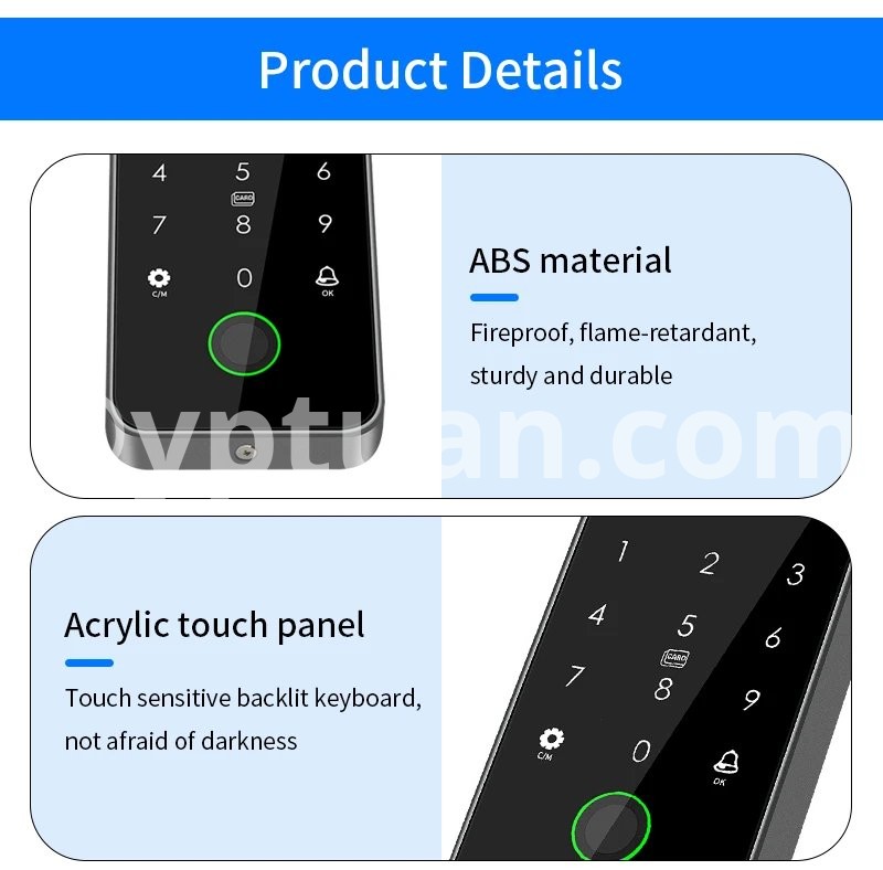 ldentification method: Fingerprint, RFID Card, Password, Tuya APP.