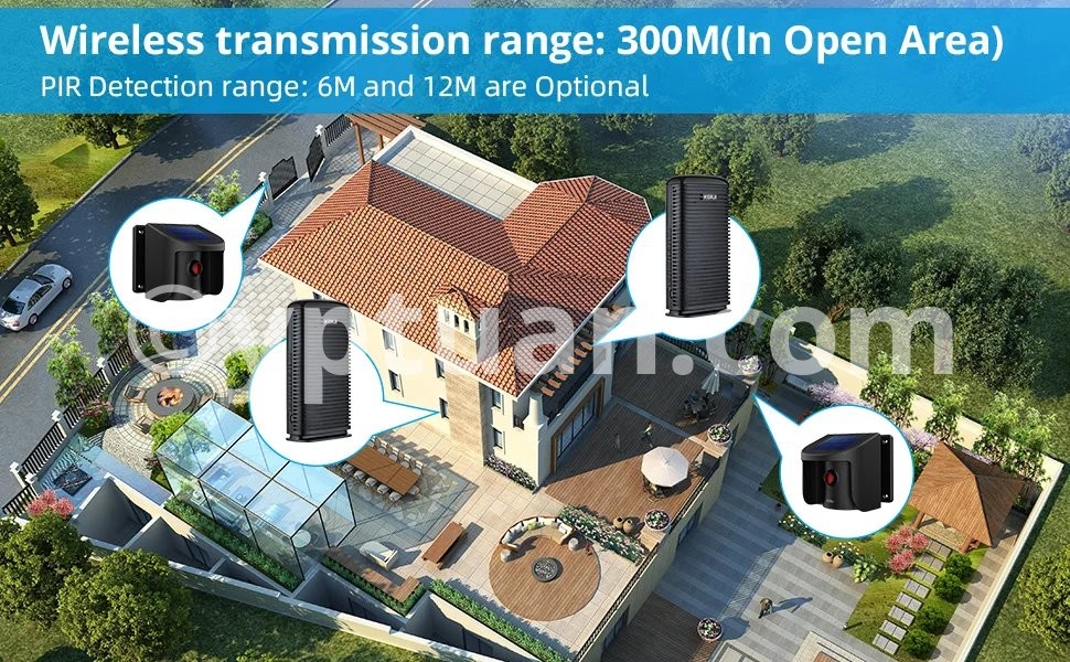 * Receiver Distance between Alarm Host and PIR Motion Sensor: 300 meters (in open area)