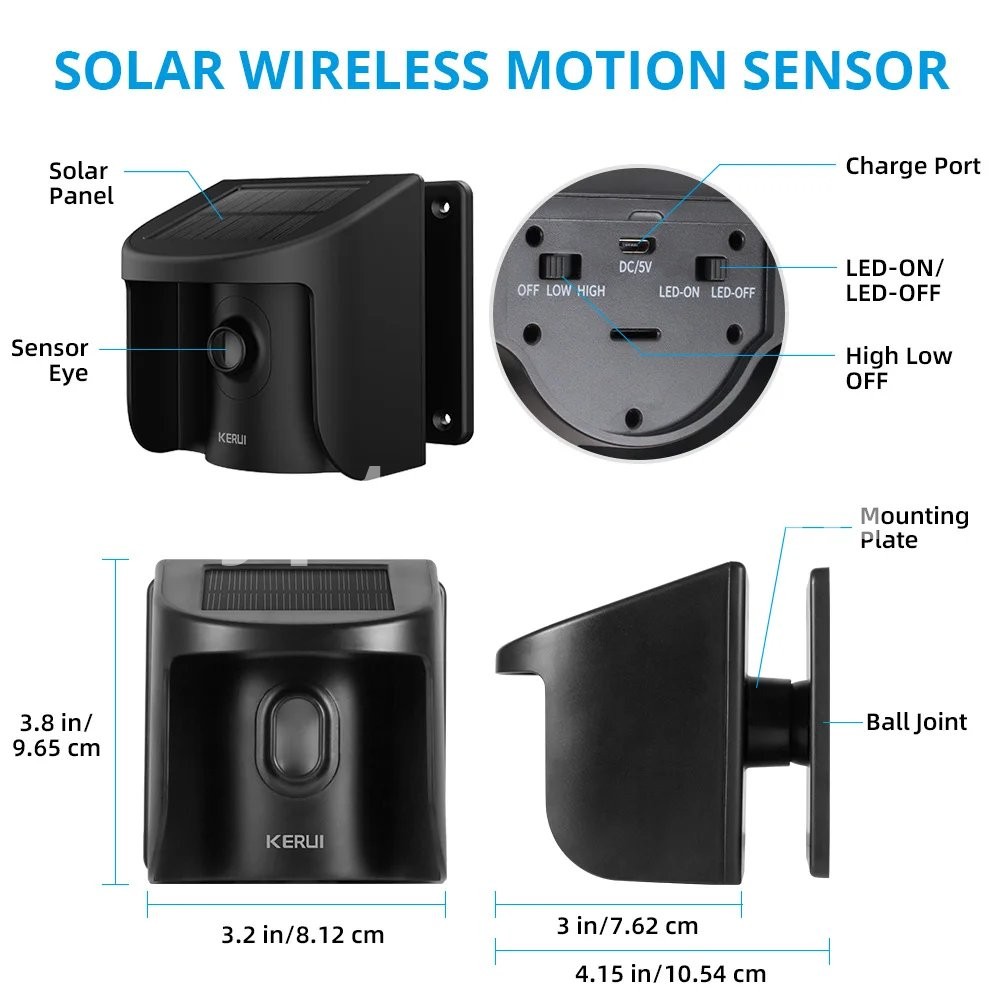 KERUI Wireless Solar Driveway Alarm Home Security Waterproof Outdoor PIR Motion Detector Garage Welcome Burglar Alarm System