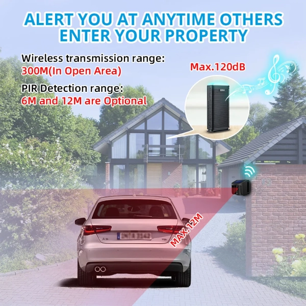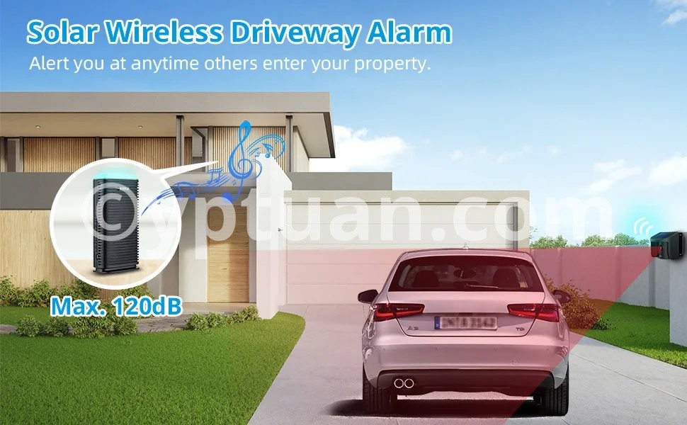 Receiver can be powered on both by power adapter and battery, while the sensor is powered on 2 AA batteries which can last at least half year (Each outdoor sensor can be triggered 35000 times.) Long battery using ensure that you don’t have to keep on top of the battery and taking the driveway alarm with you on a camping trip.