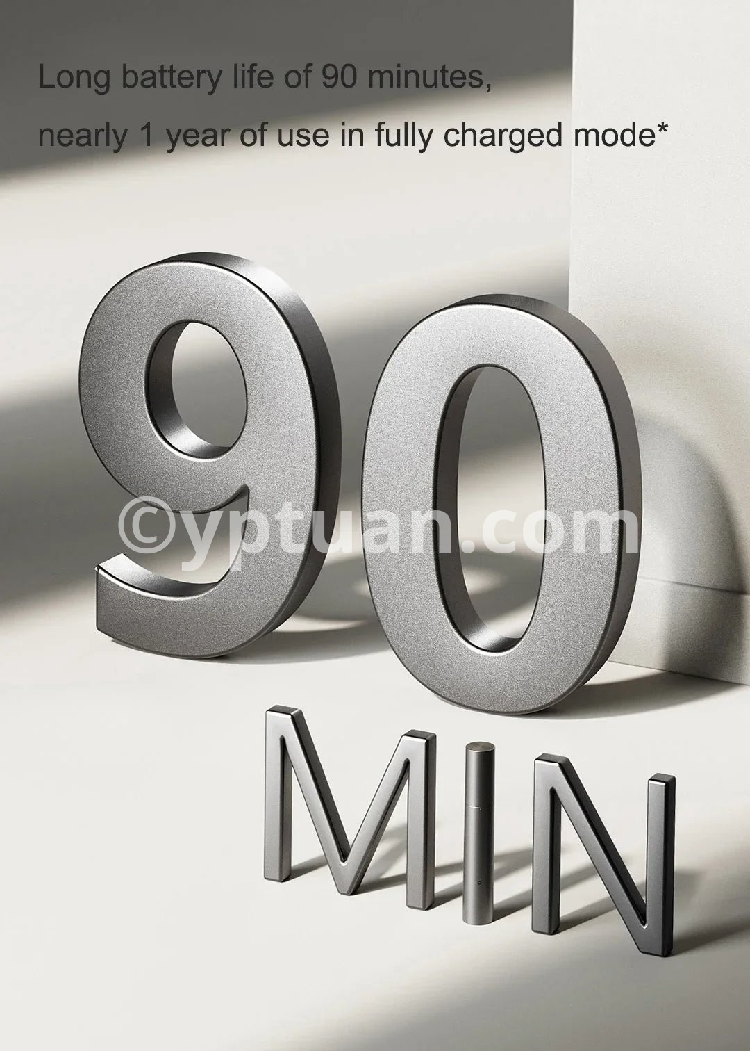 Low power consumption, long battery life of 90 minutes, and nearly 1 year of use when fully charged*.