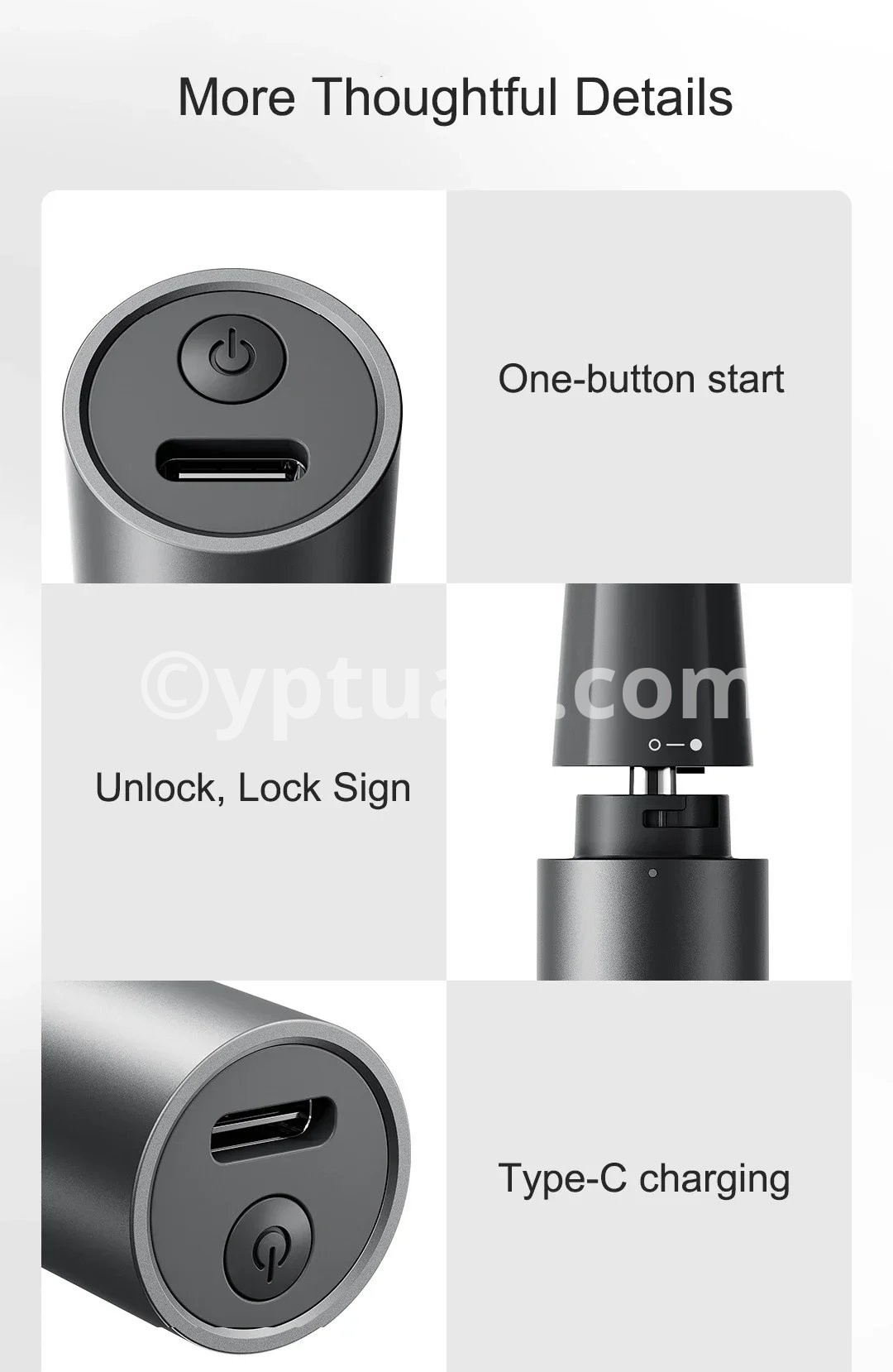 Magnetic cutter head protective cover. Hidden switch prevents accidental touch. Magnetic protective cover, easy to open and close, and dexterous to control. The buttons are hidden at the bottom, and the body is simple and smooth.