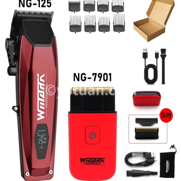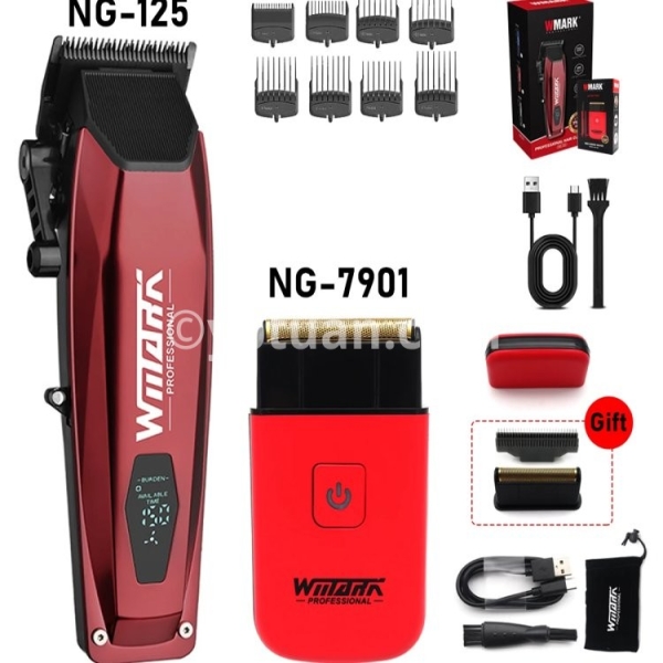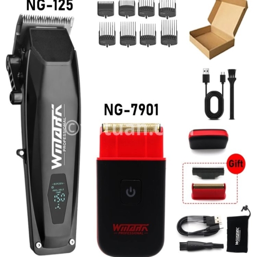 NG125 Product name: Professional hair clipper Brand: WMARK Model: NG-125 Power: 5W Power supply mode: USB charging cable Battery capacity: 2000mAh Charging time: 3 hours Working time: 150min NG7901 Brand: WMARK Model: NG-7901 Speed: 8800RPM Power:6W Battery capacity: 320mAh Charging time: 1Hours Usage time: 80Minutes Blade material: Steel