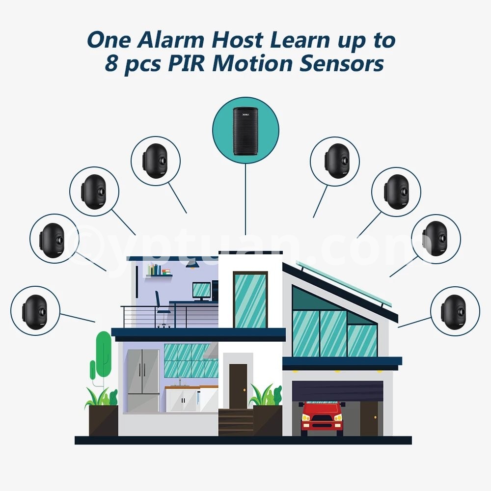 One Alarm Host Learn up to 8 pcs PIR Motion Sensors