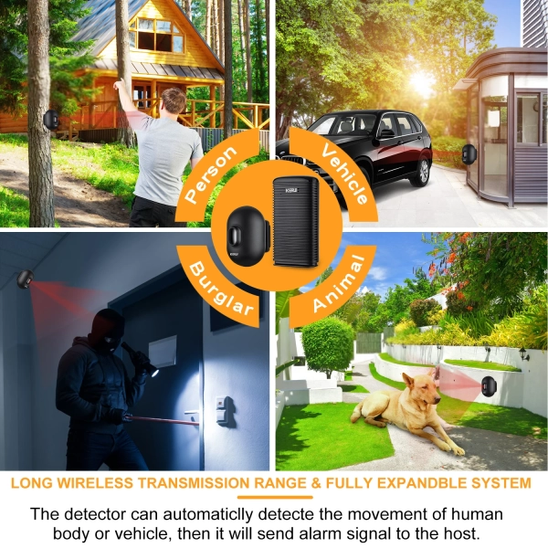 NO MORE FALSE ALARM: With adjustable detective distance switch, you can change the detect distance from 6 to 12 meters. Moreover, this system comes with two motion sensor covers, you can change the detective view angle from 110° to 10° to reduce false alarms from small animals and objects like birds and falling leaves; Super infrared penetrating power reduce false alarms from the bad weather such as rain/snow or other natural light sources interference such as sunshine.