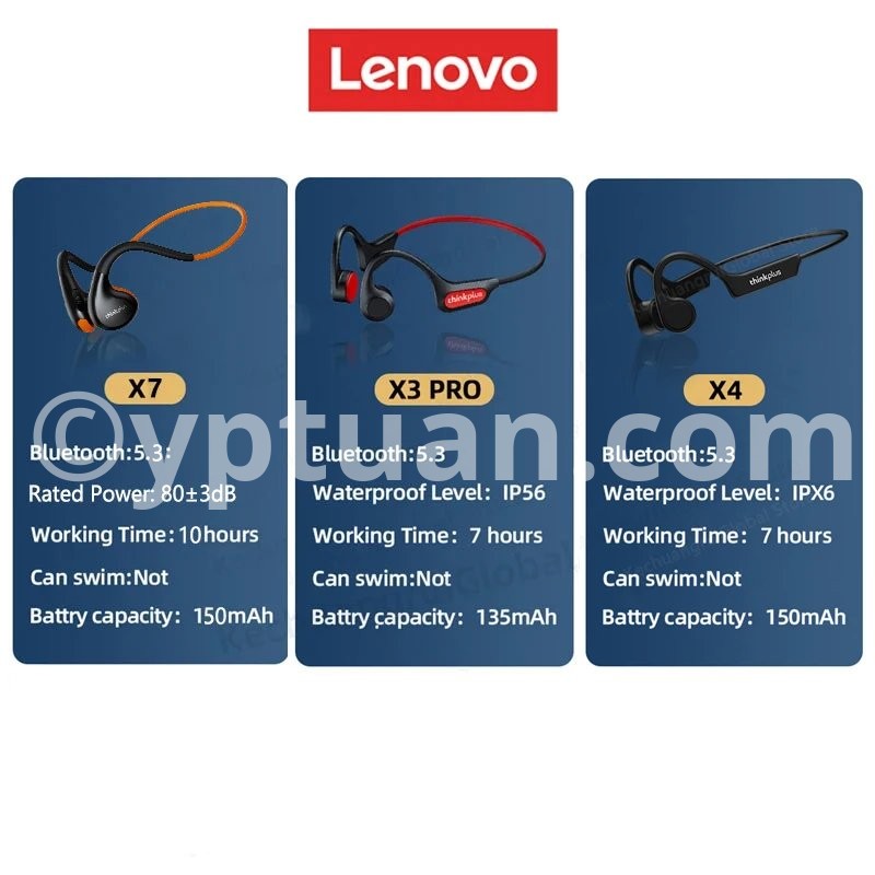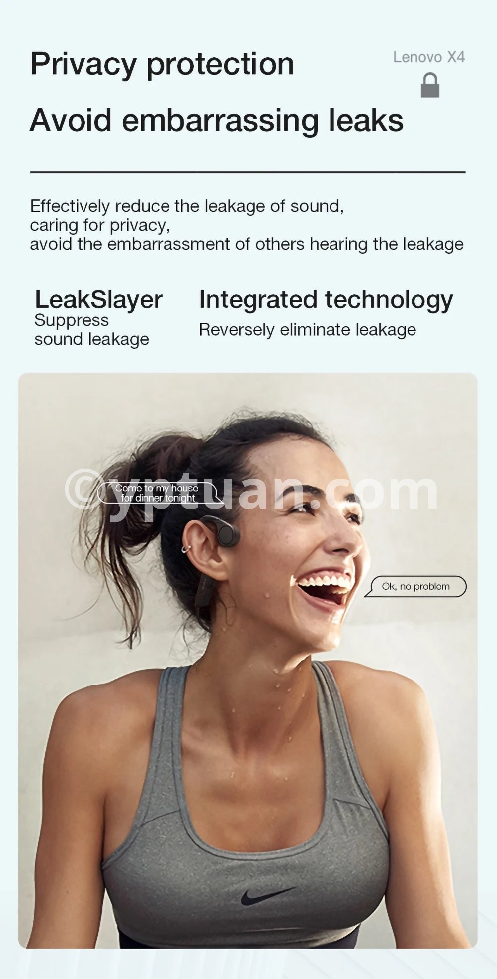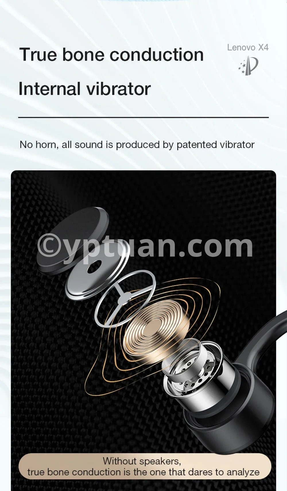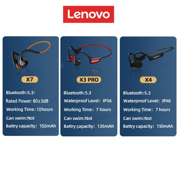 Lenovo X3 Pro Bone Conduction Earphones Bluetooth Hifi Ear-hook Wireless Headset With Mic Waterproof Earbud And X4 headphones And X7 Please note: Lenovo X7 is 2024 New Air Conduction Headphone Lenovo X3Pro is IPX56 waterproof, Built-in Bluetooth 5.3, Bone Conduction Headphone Lenovo X4 is IPX56 waterproof, cannot be used for swimming, no storage, Bone Conduction Headphone