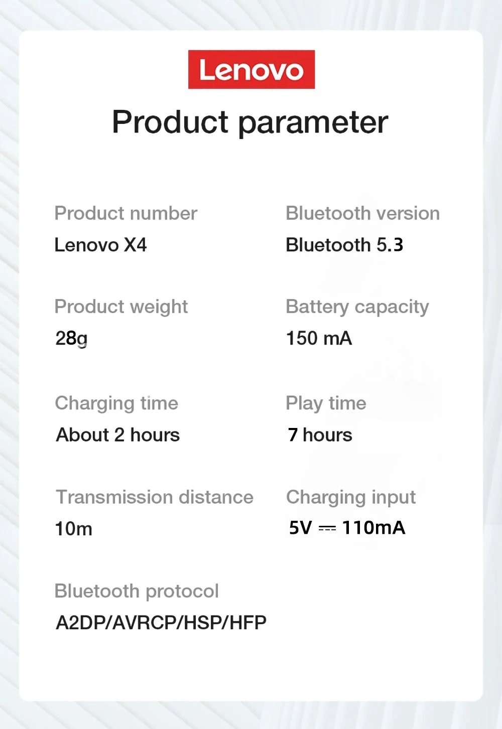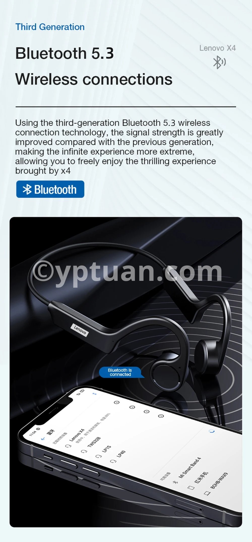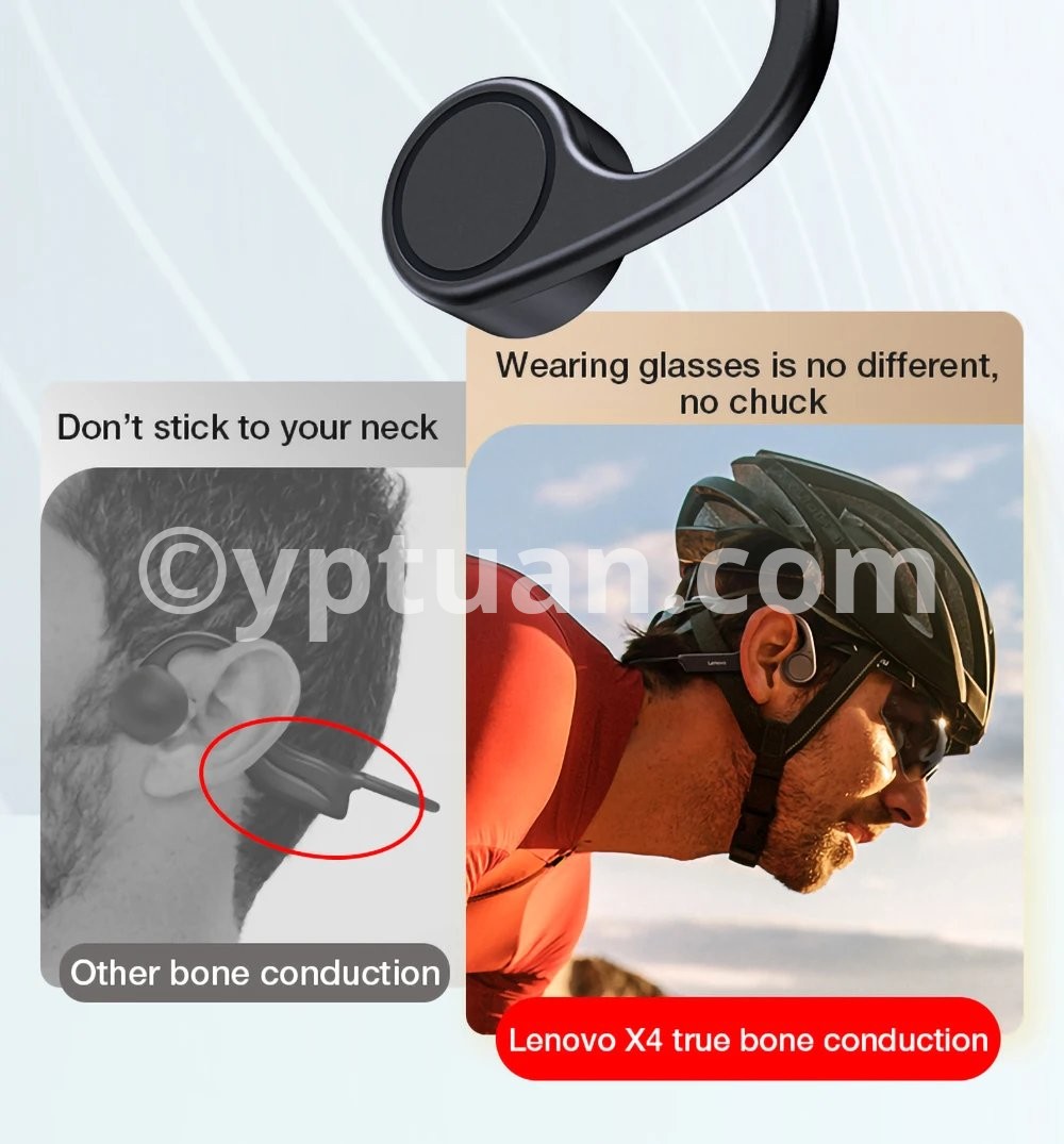 Lenovo X3 Pro Bone Conduction Earphones Bluetooth Hifi Ear-hook Wireless Headset With Mic Waterproof Earbud And X4 headphones And X7 Please note: Lenovo X7 is 2024 New Air Conduction Headphone Lenovo X3Pro is IPX56 waterproof, Built-in Bluetooth 5.3, Bone Conduction Headphone Lenovo X4 is IPX56 waterproof, cannot be used for swimming, no storage, Bone Conduction Headphone