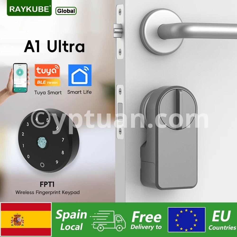 RAYKUBE FPT1 Tuya Bluetooth Intelligent Wireless Fingerprint Password Digital Keypad Lock No-dig installation For A1 Pro Lock